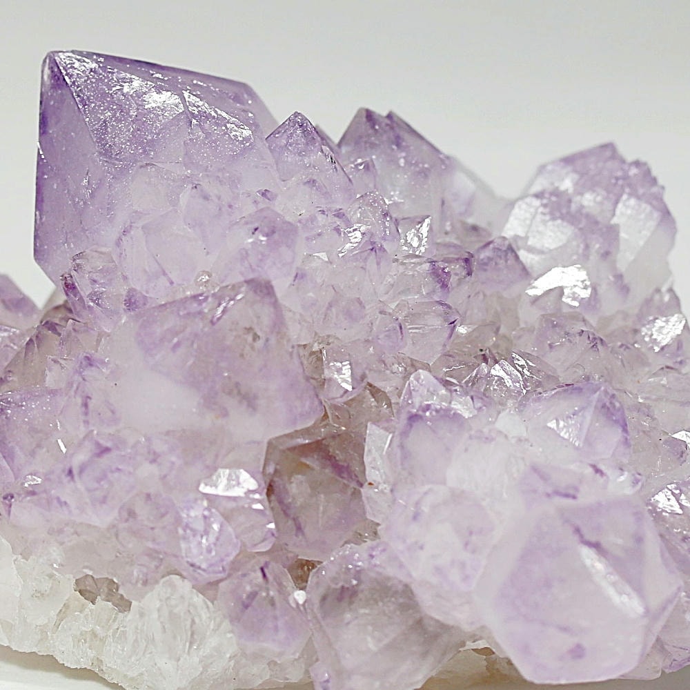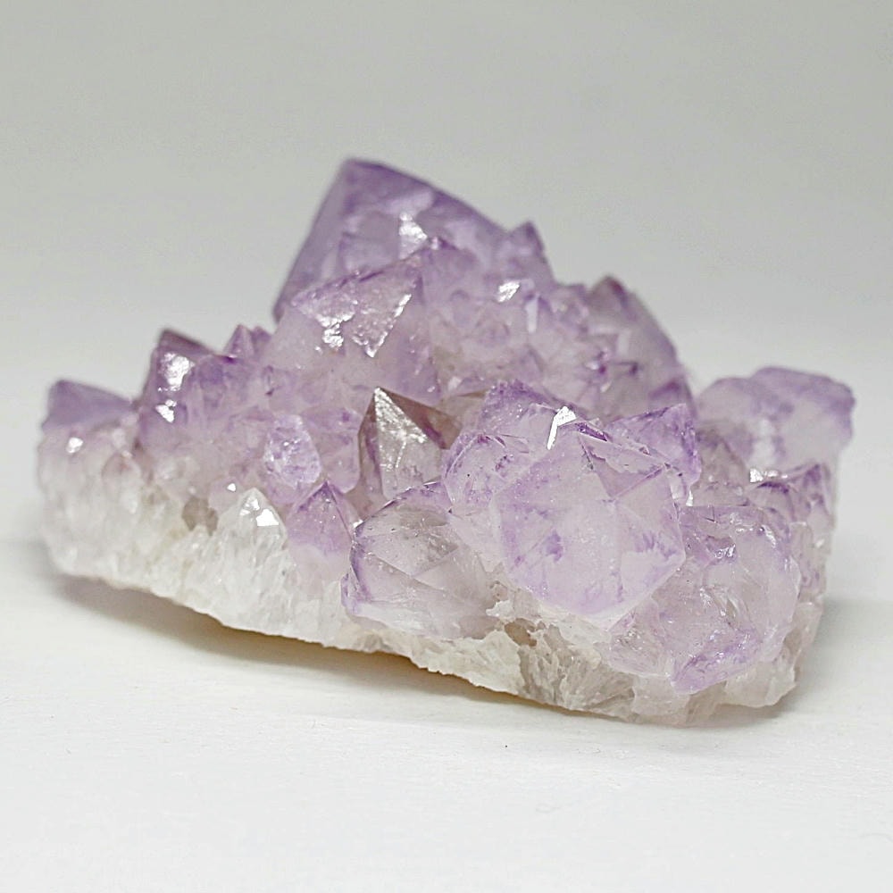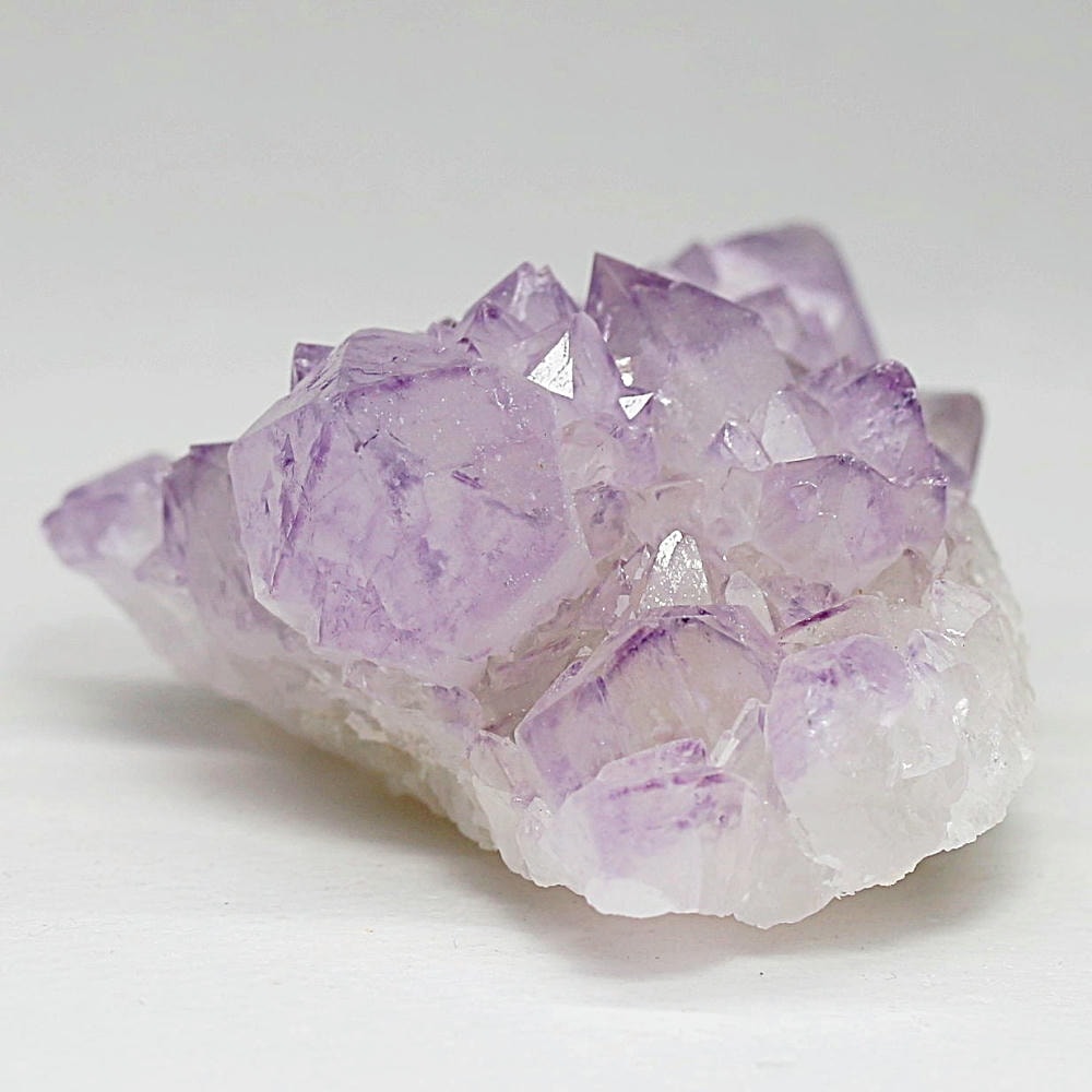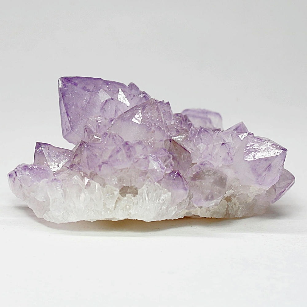 アメジスト本来の浄化力に加え、群晶構造によってエネルギーが周囲へ拡散すると云われ、空間や人間関係の調和を促す石として伝えられています。人が集まる場所や癒しの空間に置く原石としても人気の高い存在です。