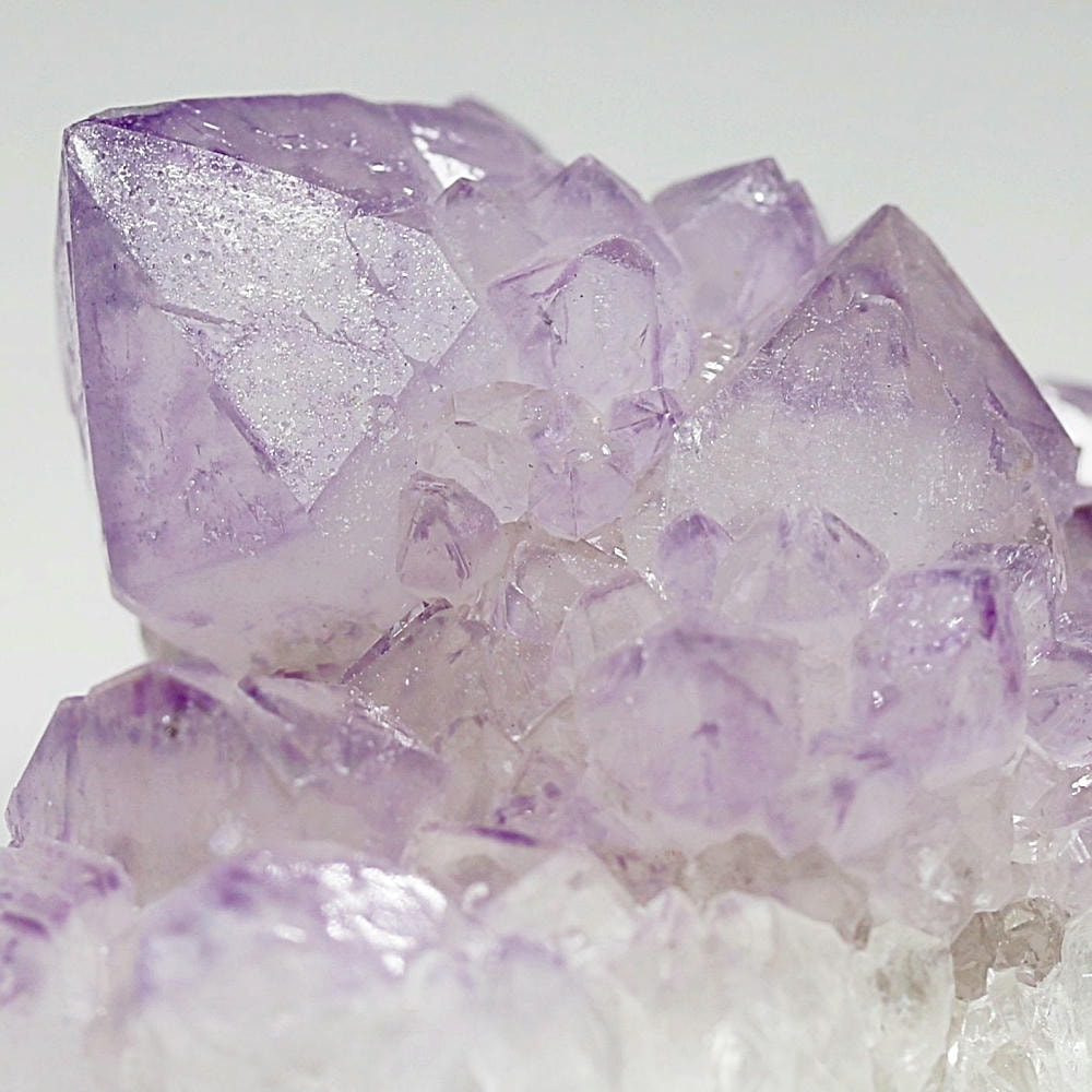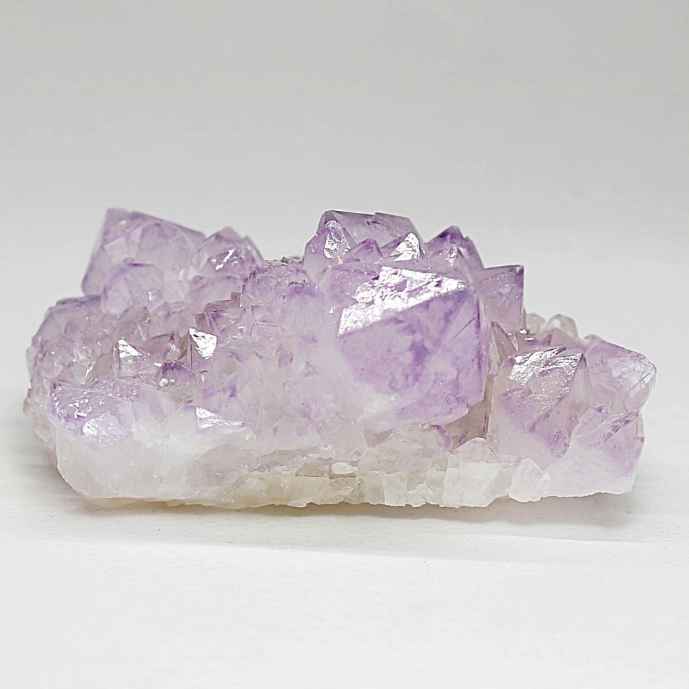 結晶の各面にやわらかな紫のグラデーションが現れ、光を受けた際の輝きも格別となり、南アフリカ産カクタスアメジストならではの澄んだ色彩美を存分にご堪能いただけます。