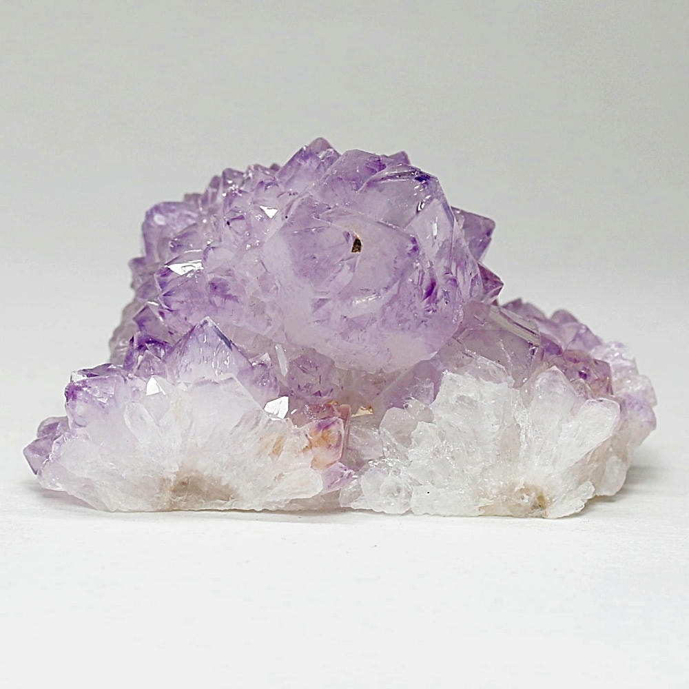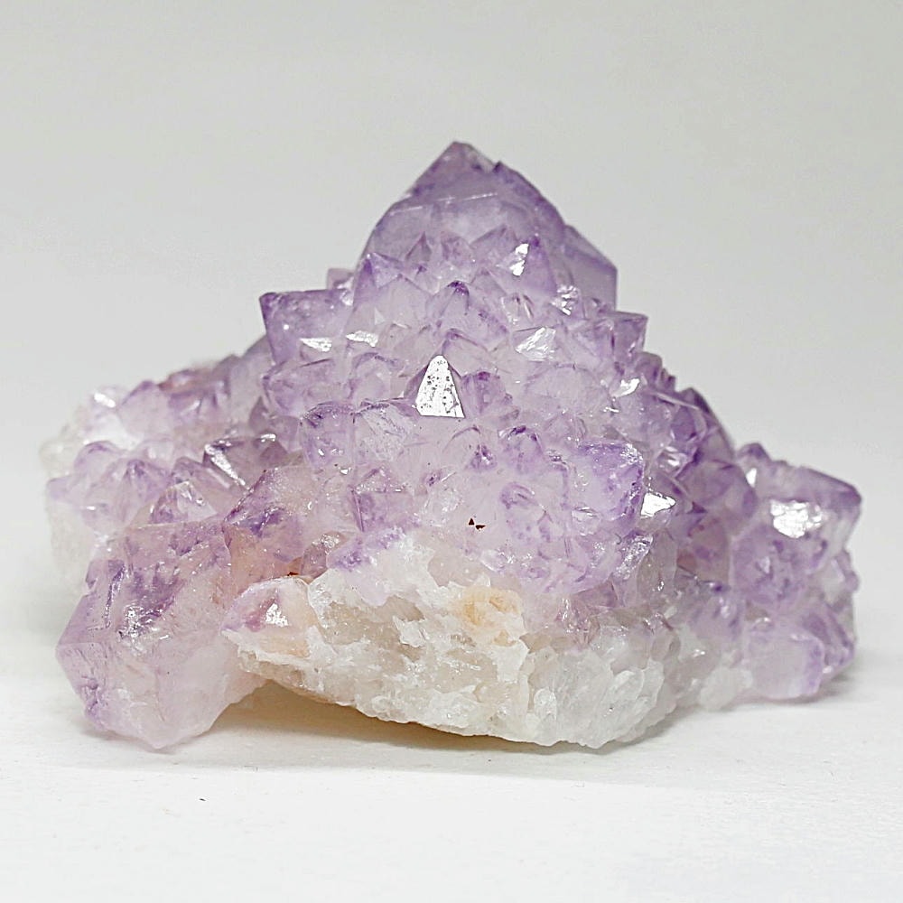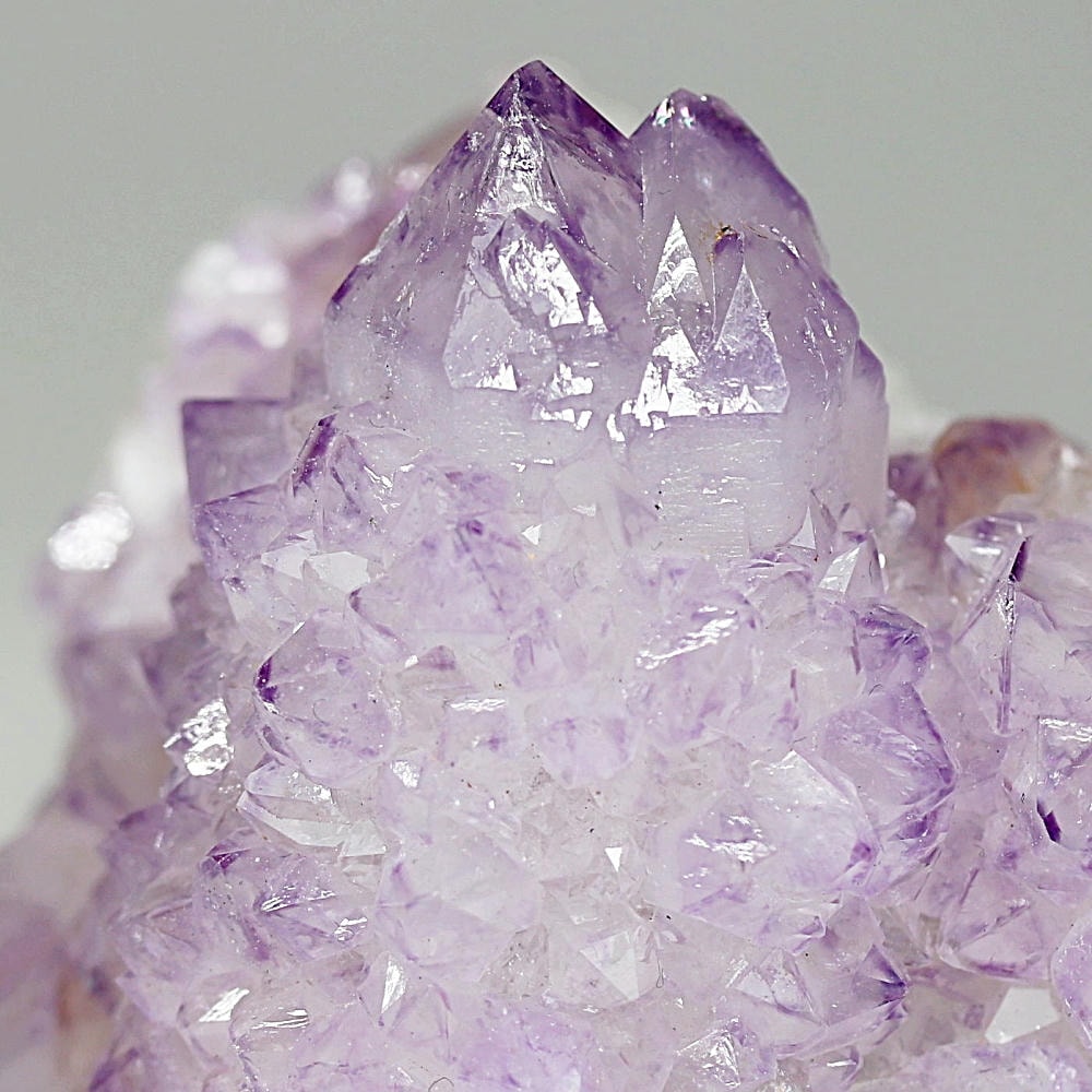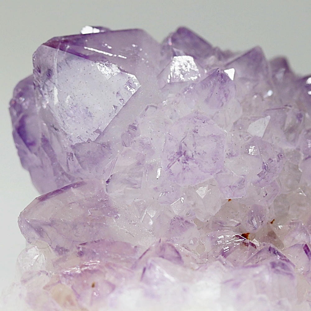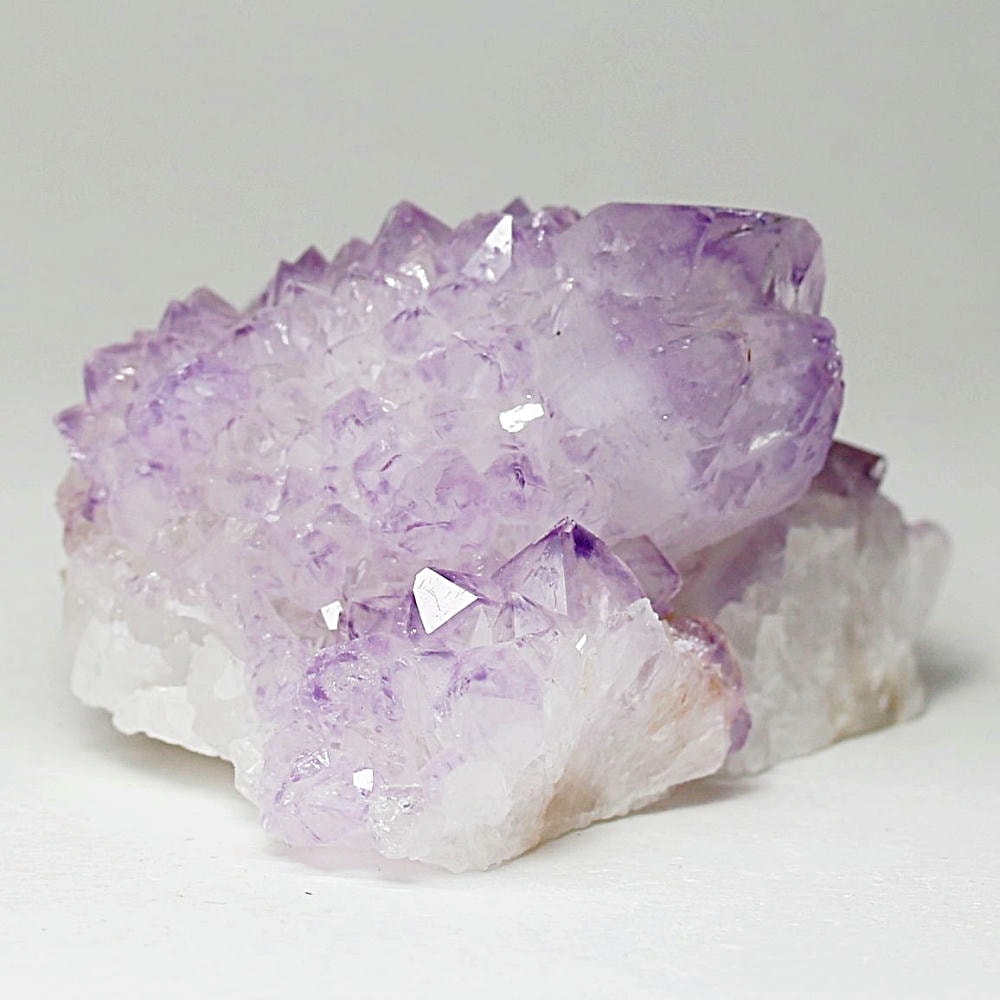 結晶の各面にやわらかな紫のグラデーションが現れ、光を受けた際の輝きも格別となり、南アフリカ産カクタスアメジストならではの澄んだ色彩美を存分にご堪能いただけます。