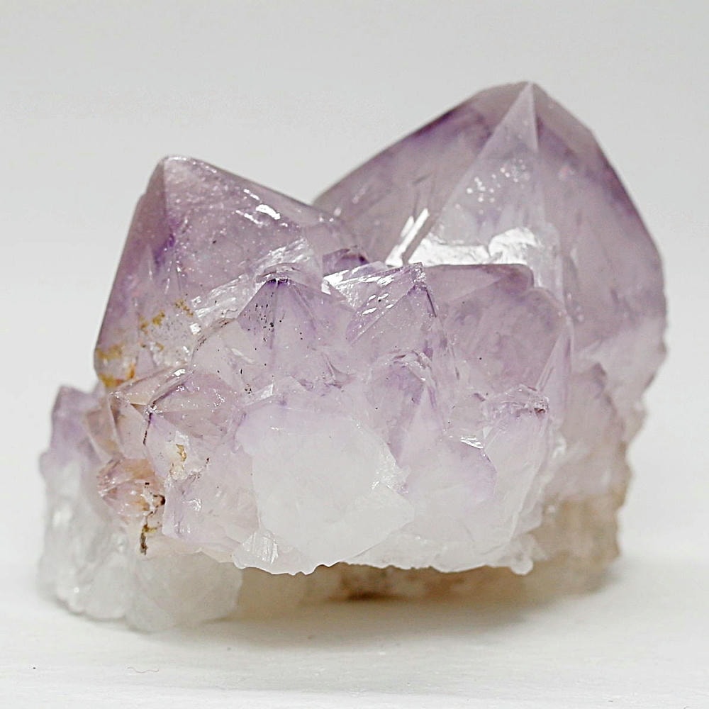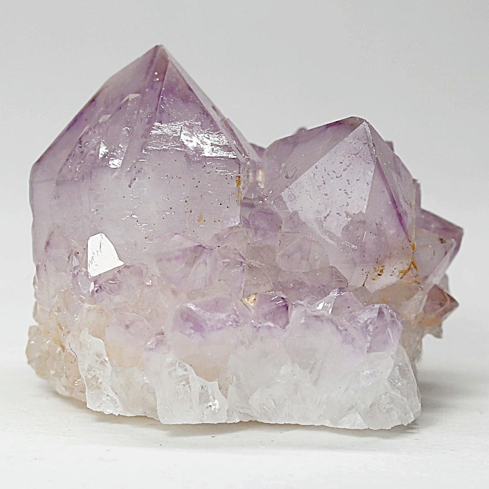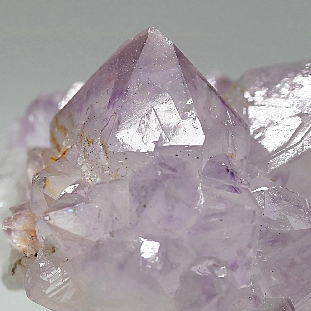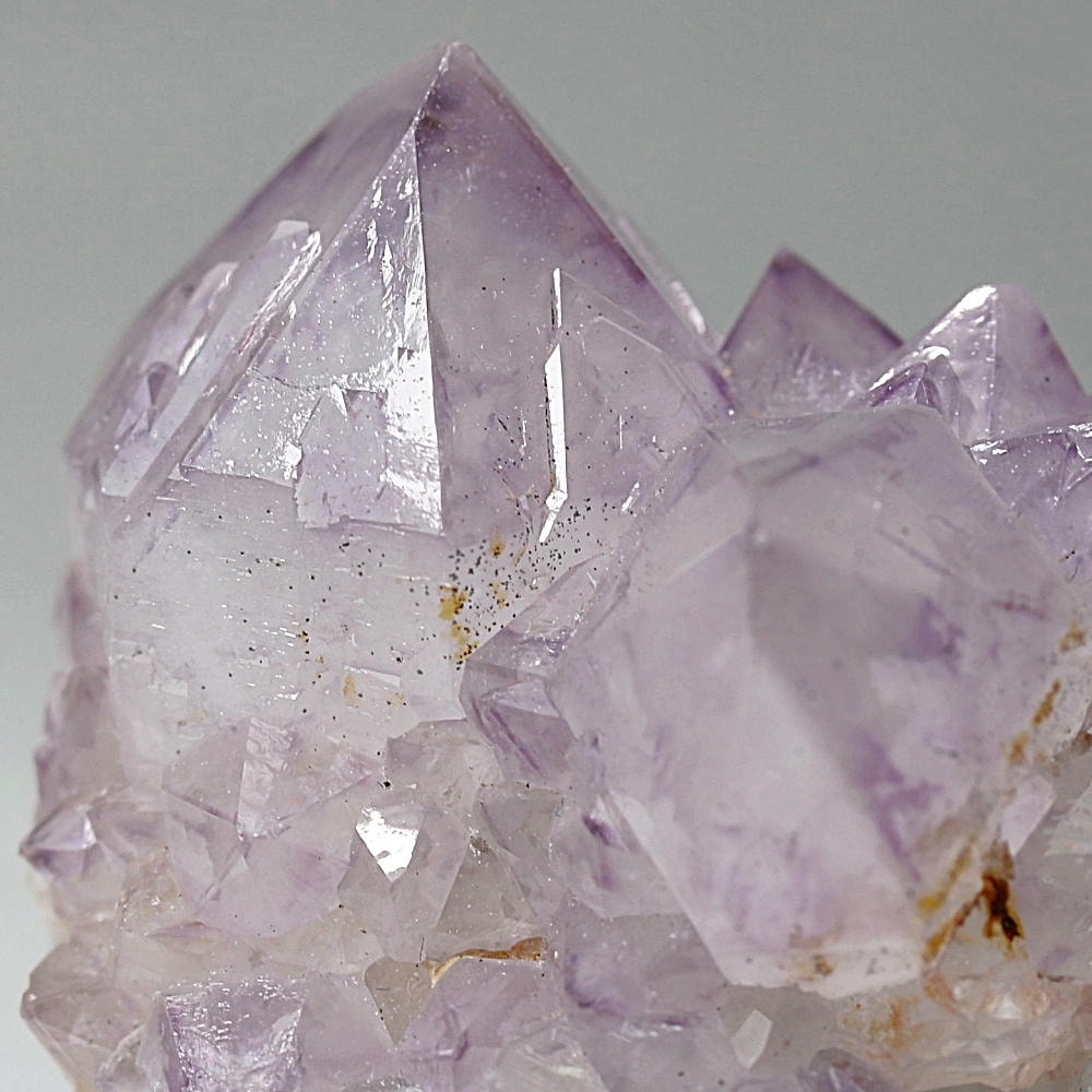 結晶全体が美しいラベンダーカラーに色づいた、鉄分による褐色化がほとんど見られないタイプです。