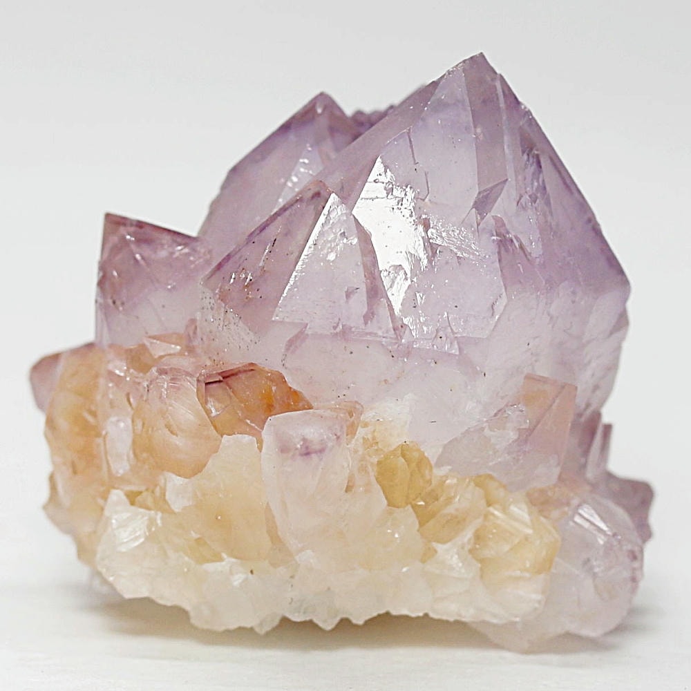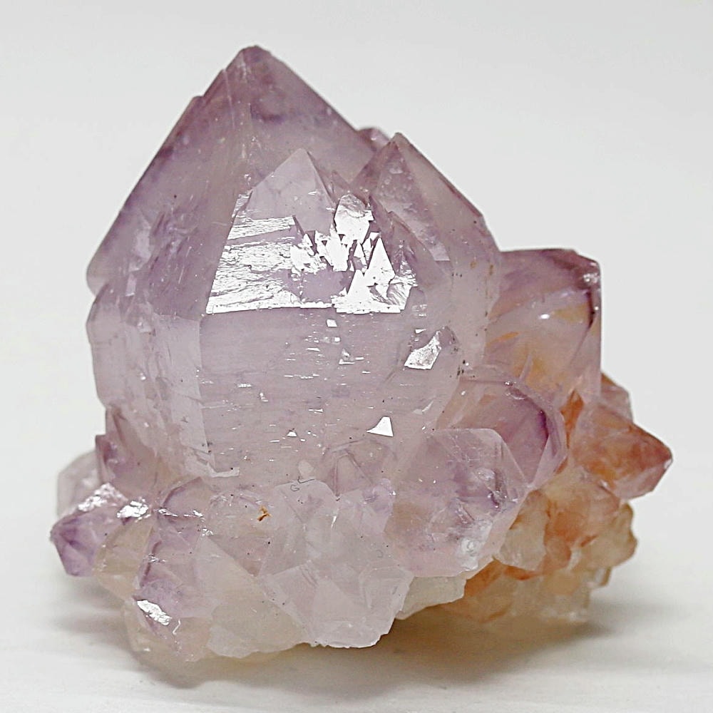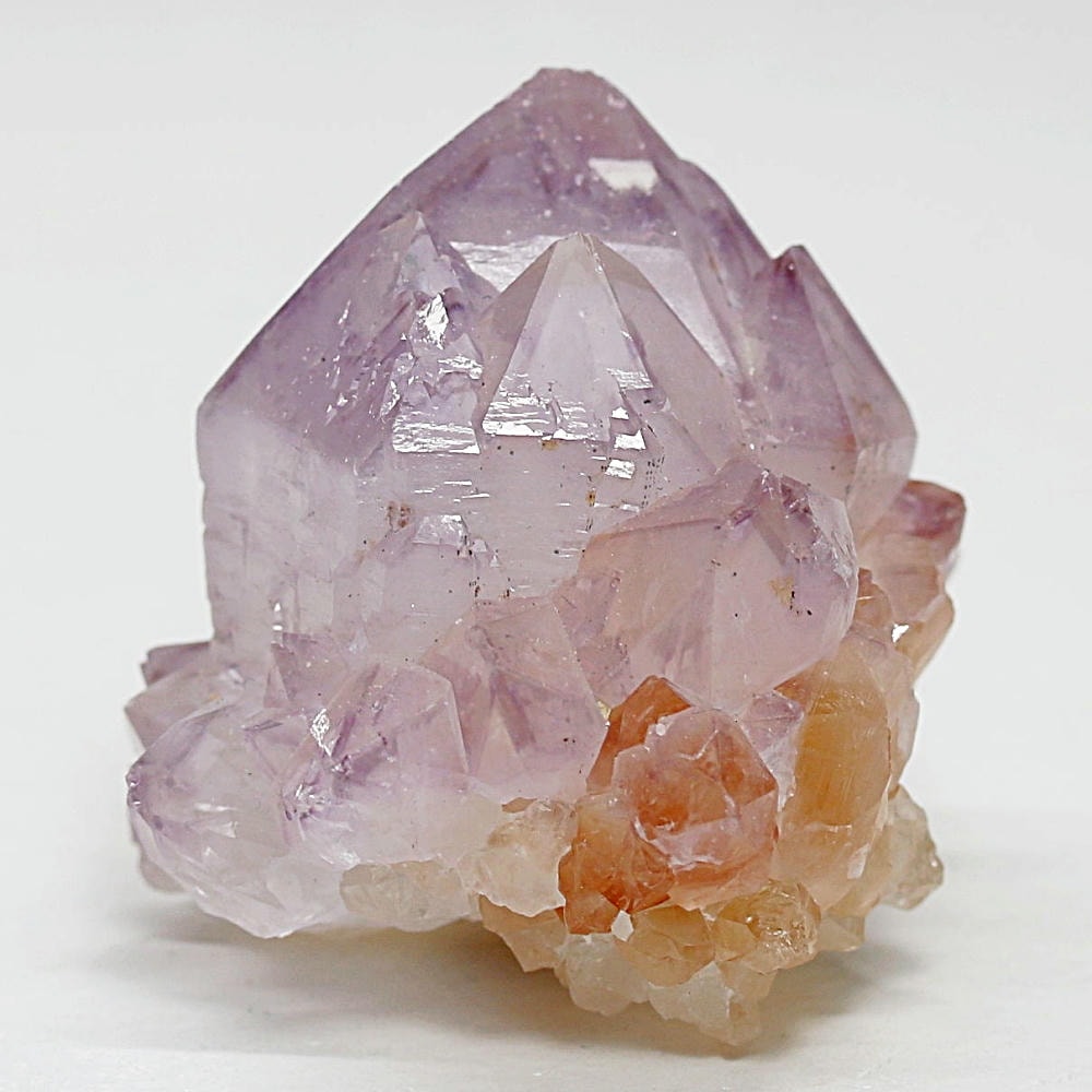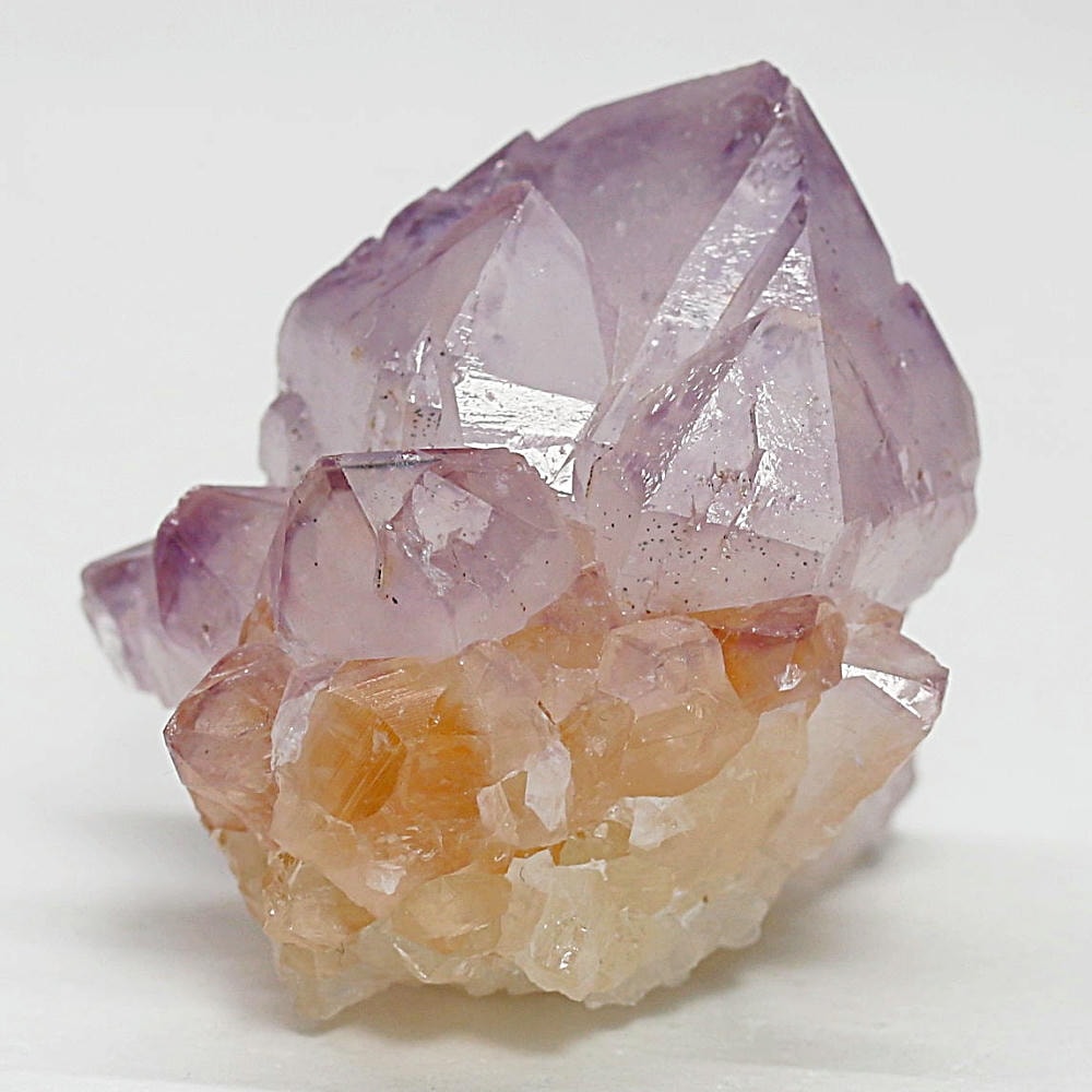 ラベンダーカラーの結晶の中に、鉄分由来のイエローからオレンジの色彩が調和した、豊かな色彩のクラスターです。
