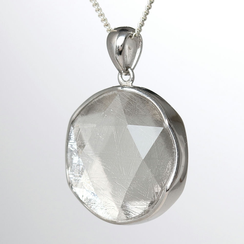 ギベオン隕石に、六芒星を象った両面コーティングを施すことでキラキラと輝く美しいペンダントトップに仕上げました。