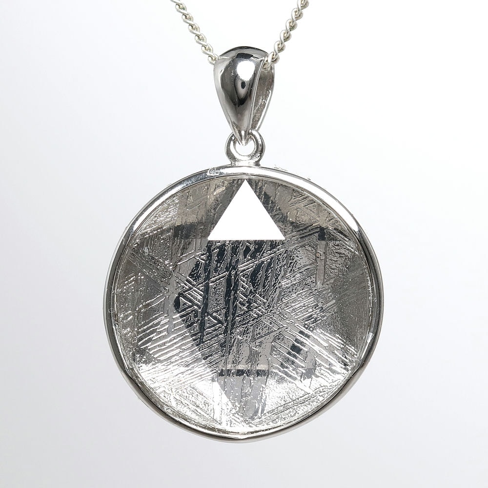 ギベオン隕石に、六芒星を象った両面コーティングを施すことでキラキラと輝く美しいペンダントトップに仕上げました。