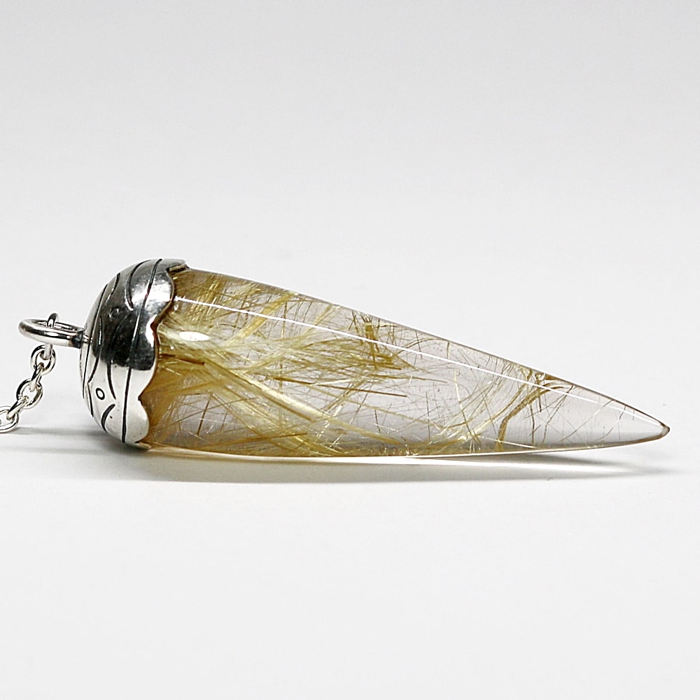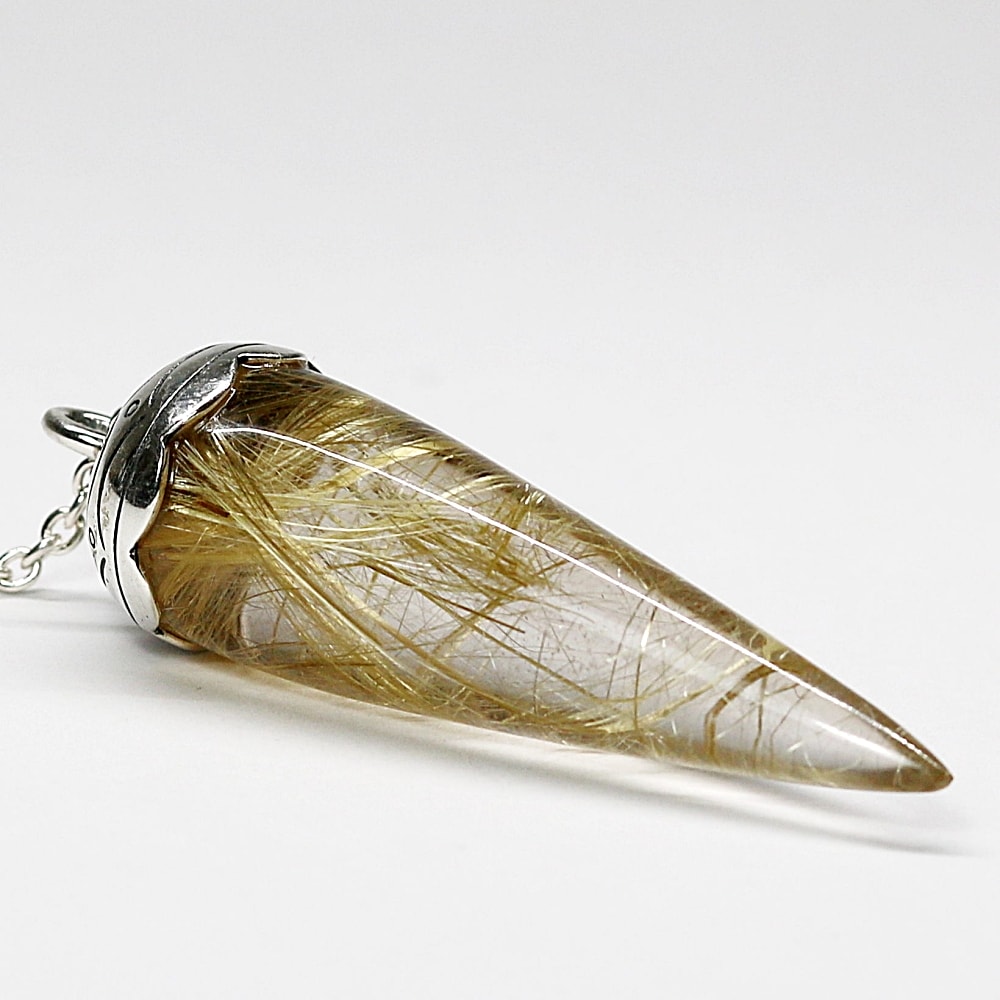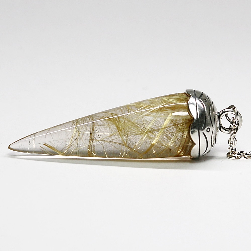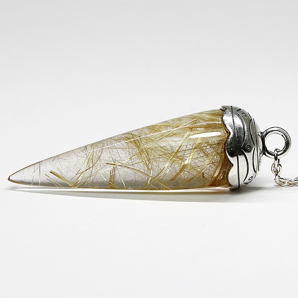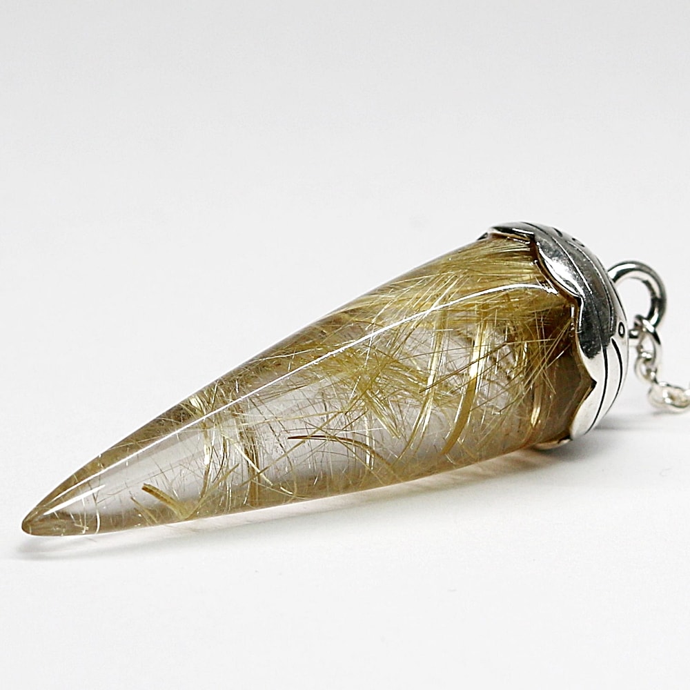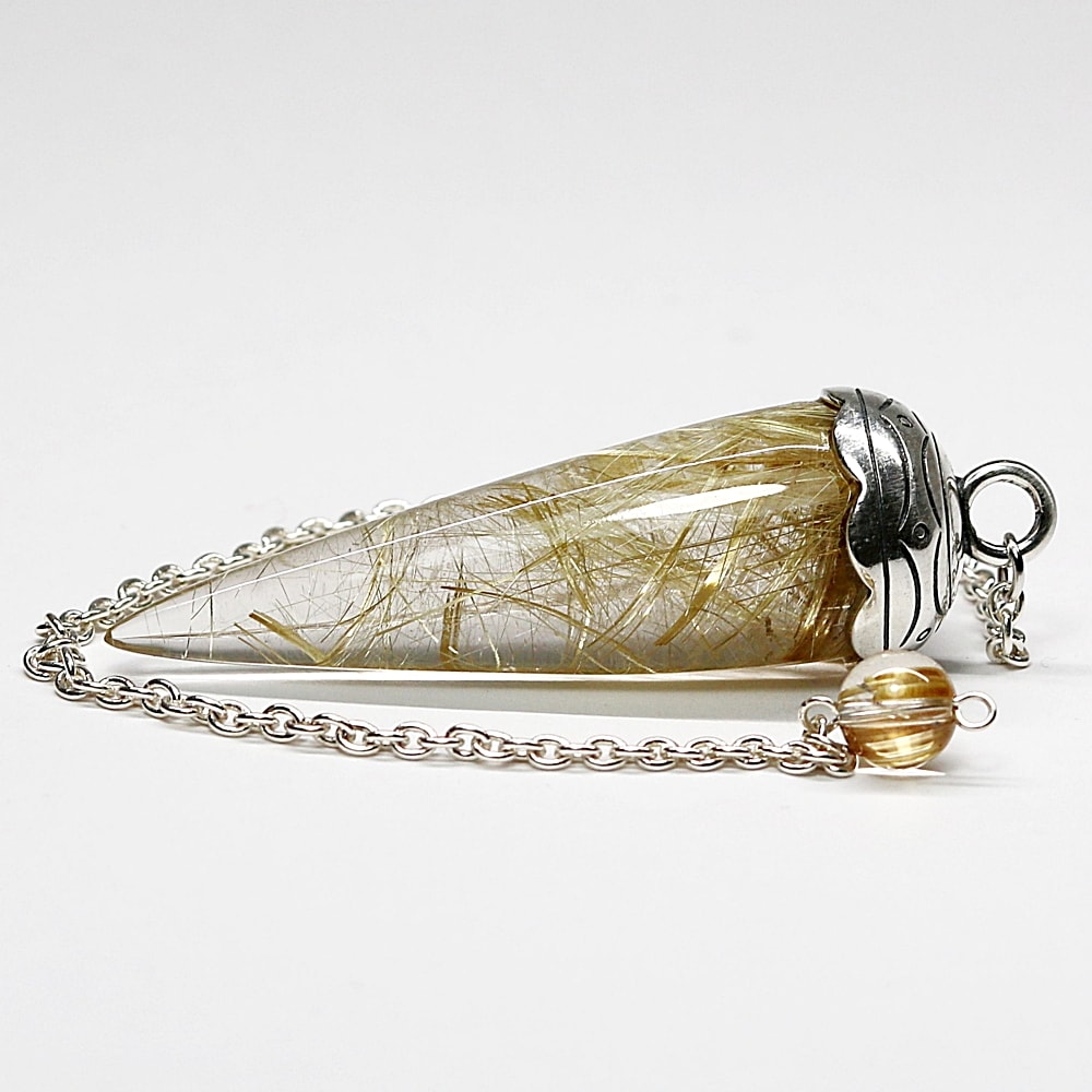 [高品質++]ブラジル産ルチルクォーツペンデュラム(ラウンドタイプ/全長約5.5cm・チェーン長さ約16cm)¥128,000クイックガイド送料
