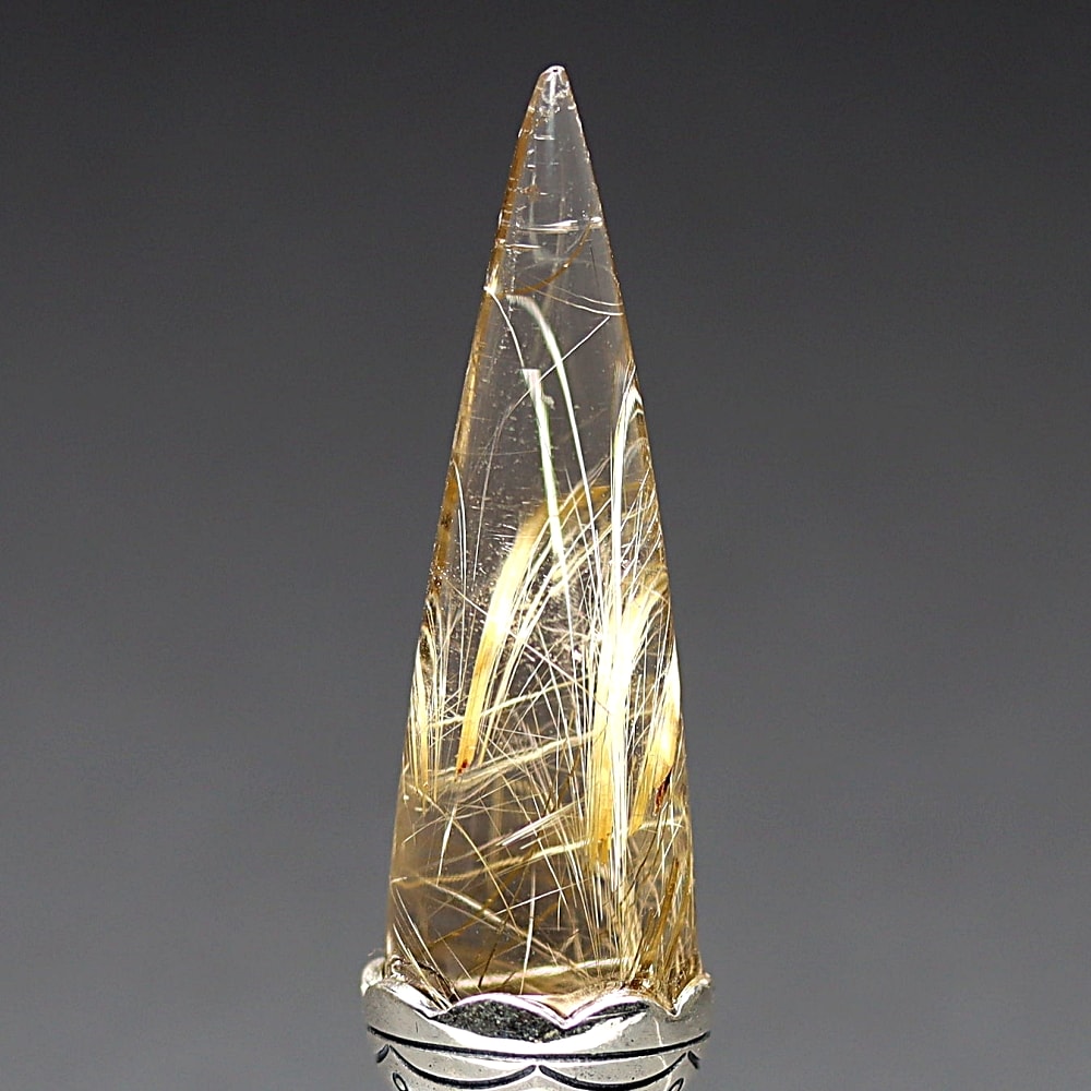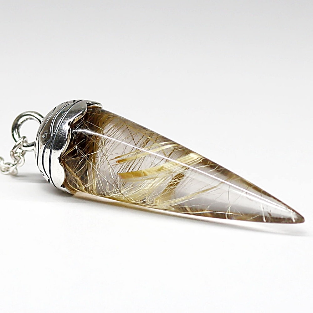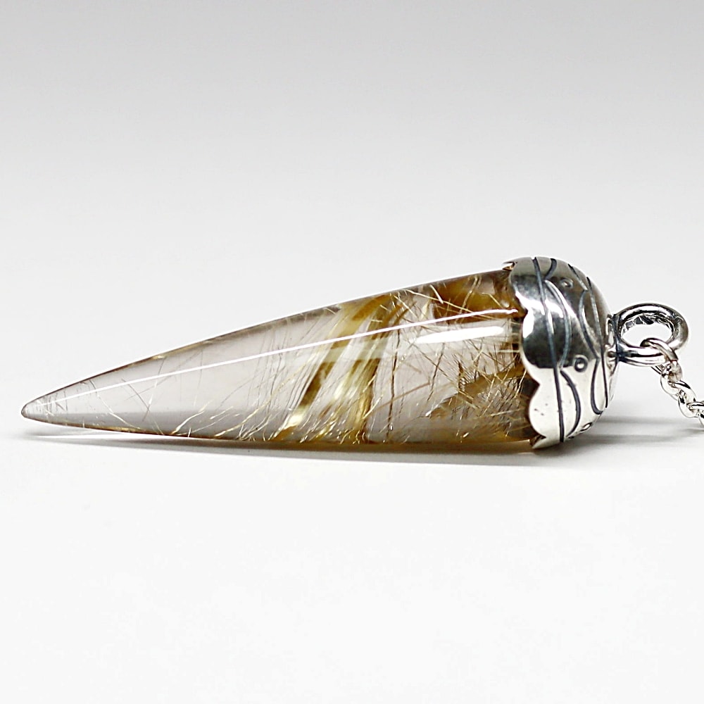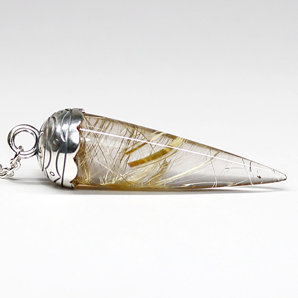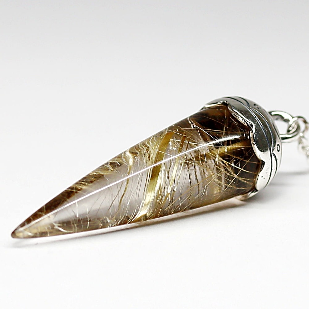 [高品質++]ブラジル産ルチルクォーツペンデュラム(ラウンドタイプ/全長約5.0cm・チェーン長さ約16cm)¥98,000クイックガイド送料