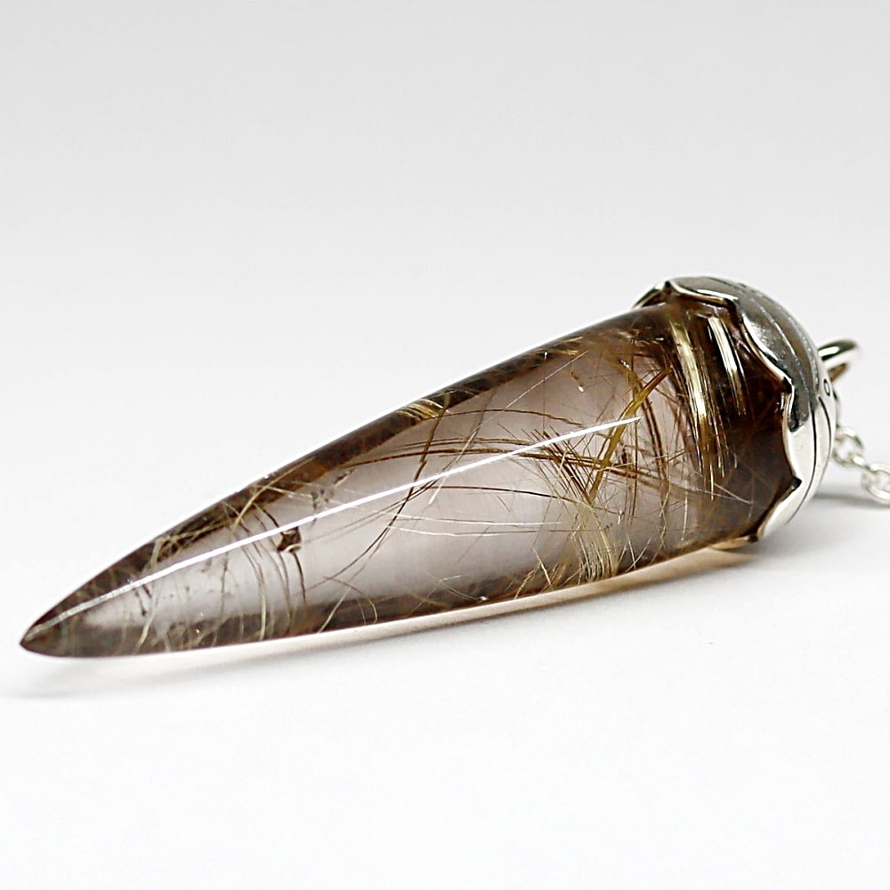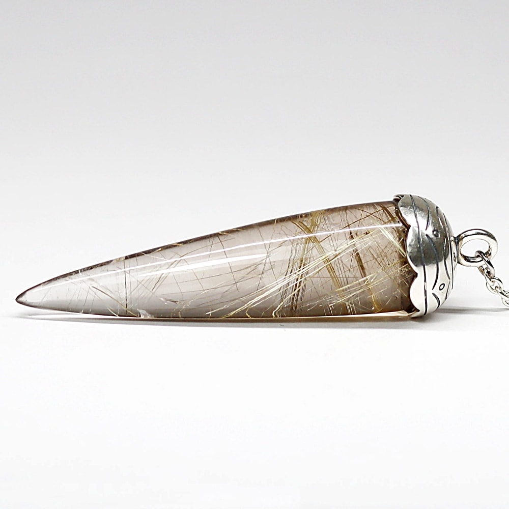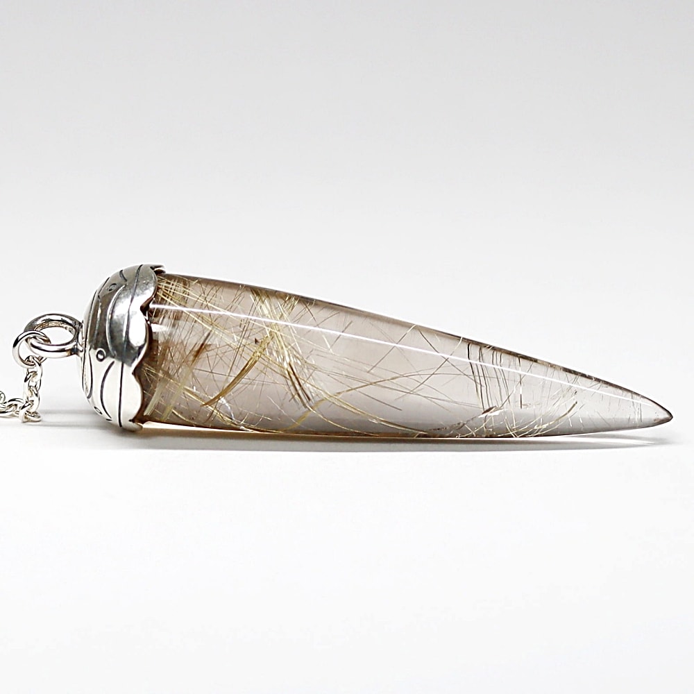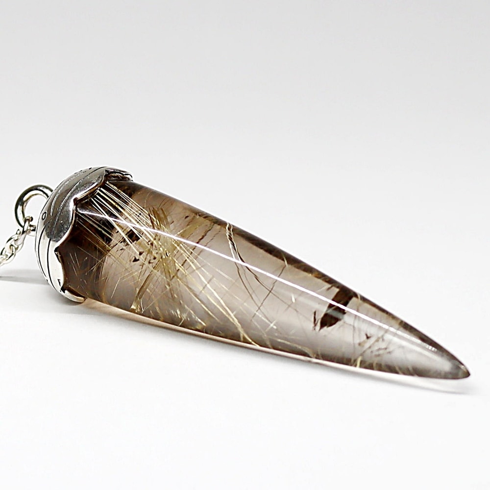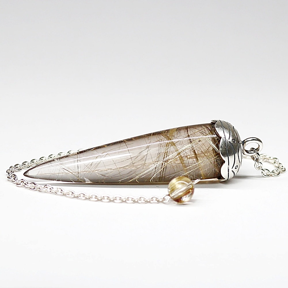 [高品質+]ブラジル産ルチルクォーツペンデュラム(ラウンドタイプ/全長約6.4cm・チェーン長さ約16cm)