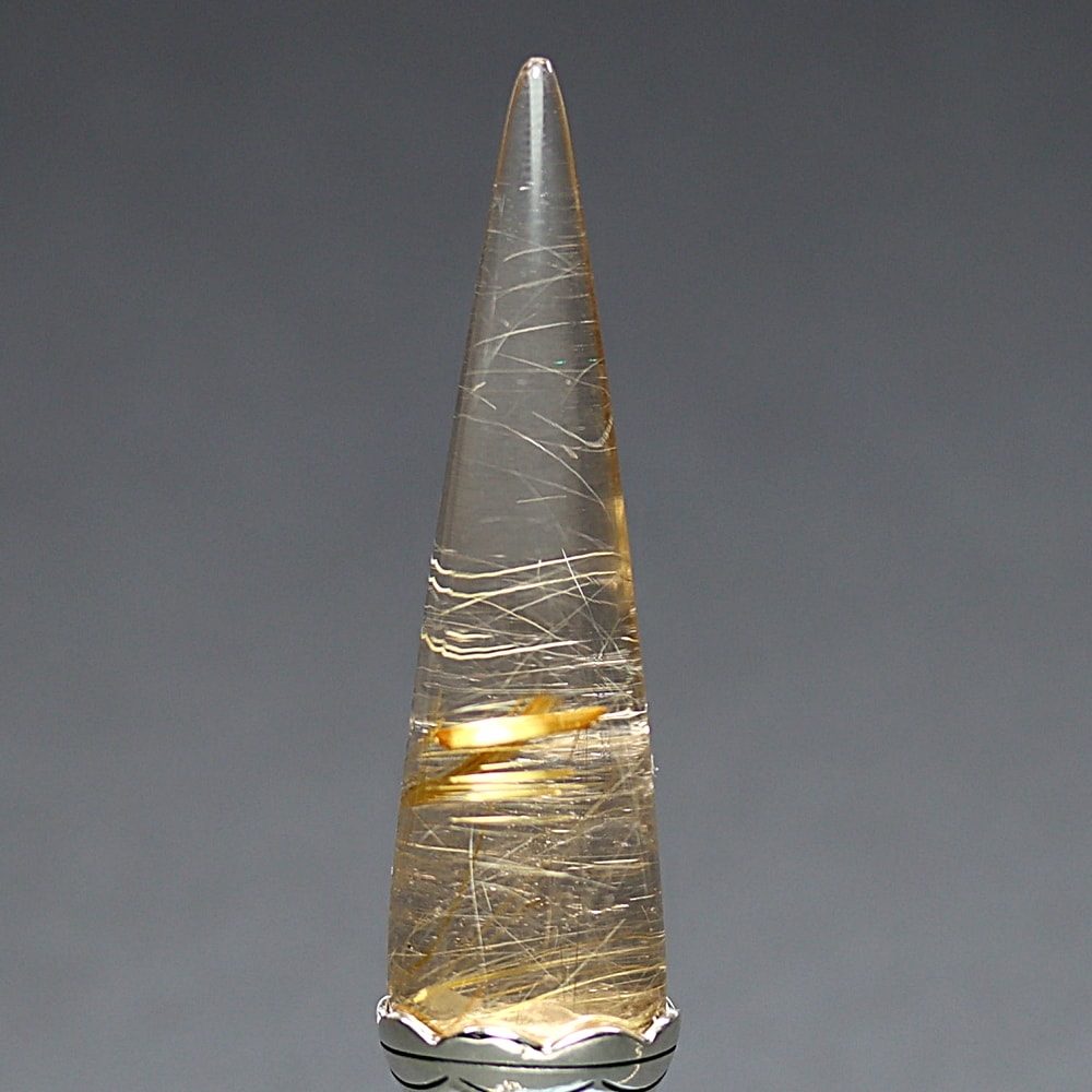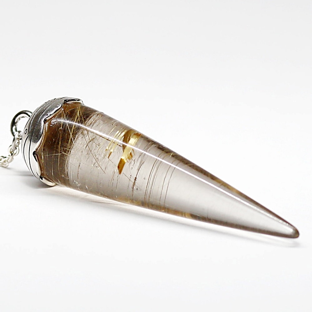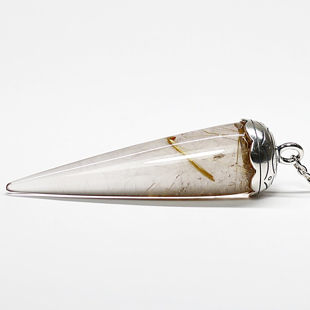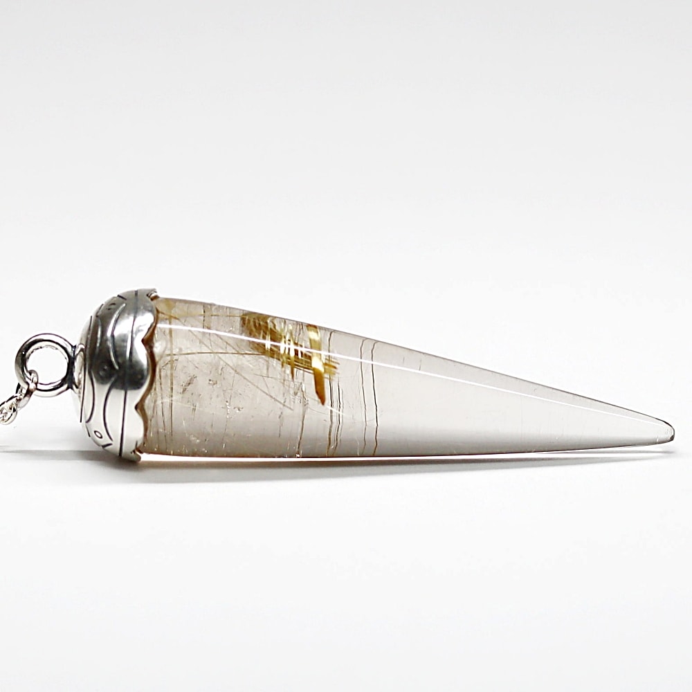 [高品質+]ブラジル産ルチルクォーツペンデュラム(ラウンドタイプ/全長約6.4cm・チェーン長さ約16cm)