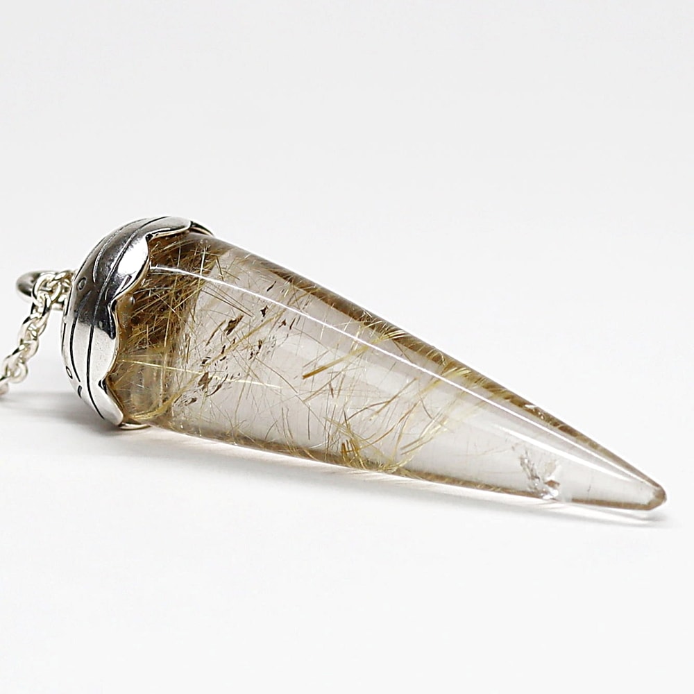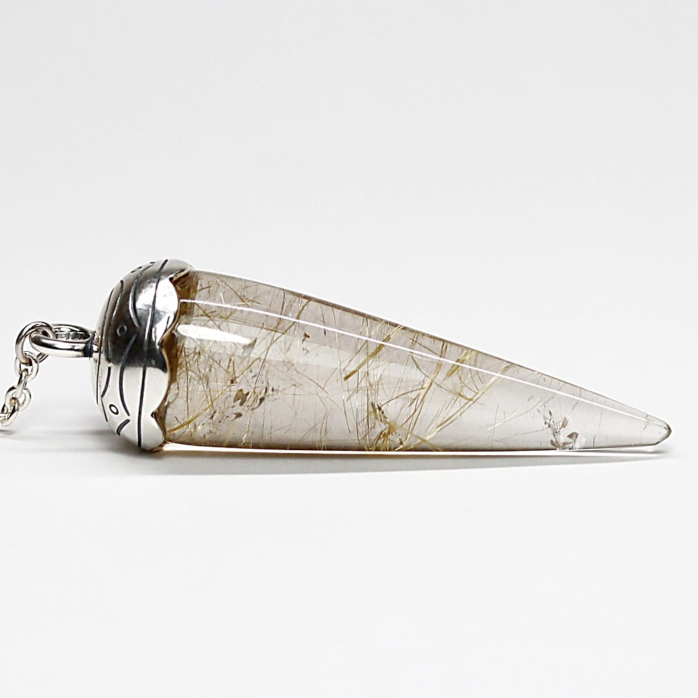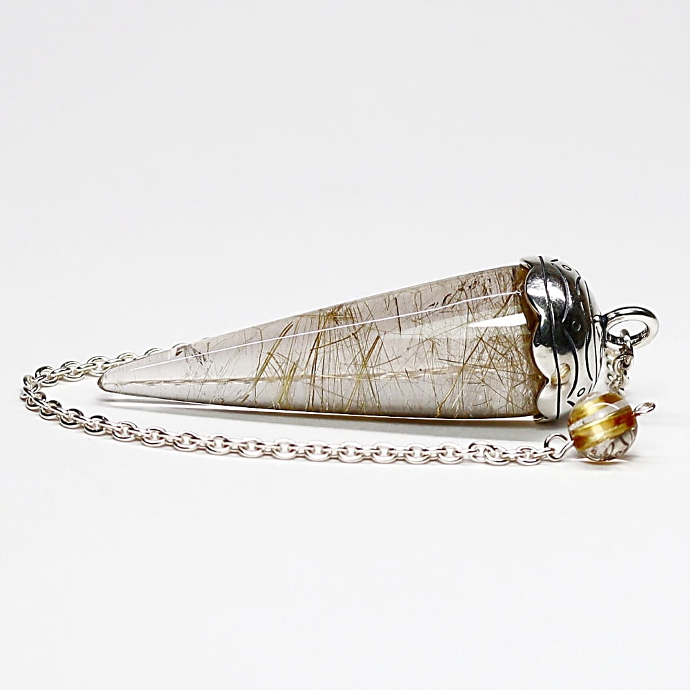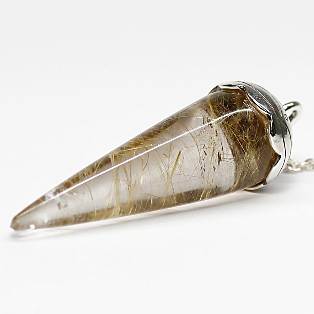 [高品質+]ブラジル産ルチルクォーツペンデュラム(ラウンドタイプ/全長約5.4cm・チェーン長さ約16cm)