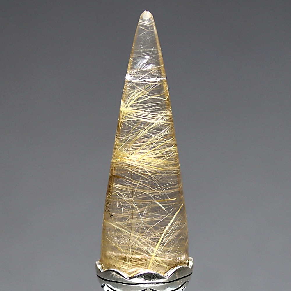 [高品質+]ブラジル産ルチルクォーツペンデュラム(ラウンドタイプ/全長約5.4cm・チェーン長さ約16cm)¥60,000クイックガイド送料