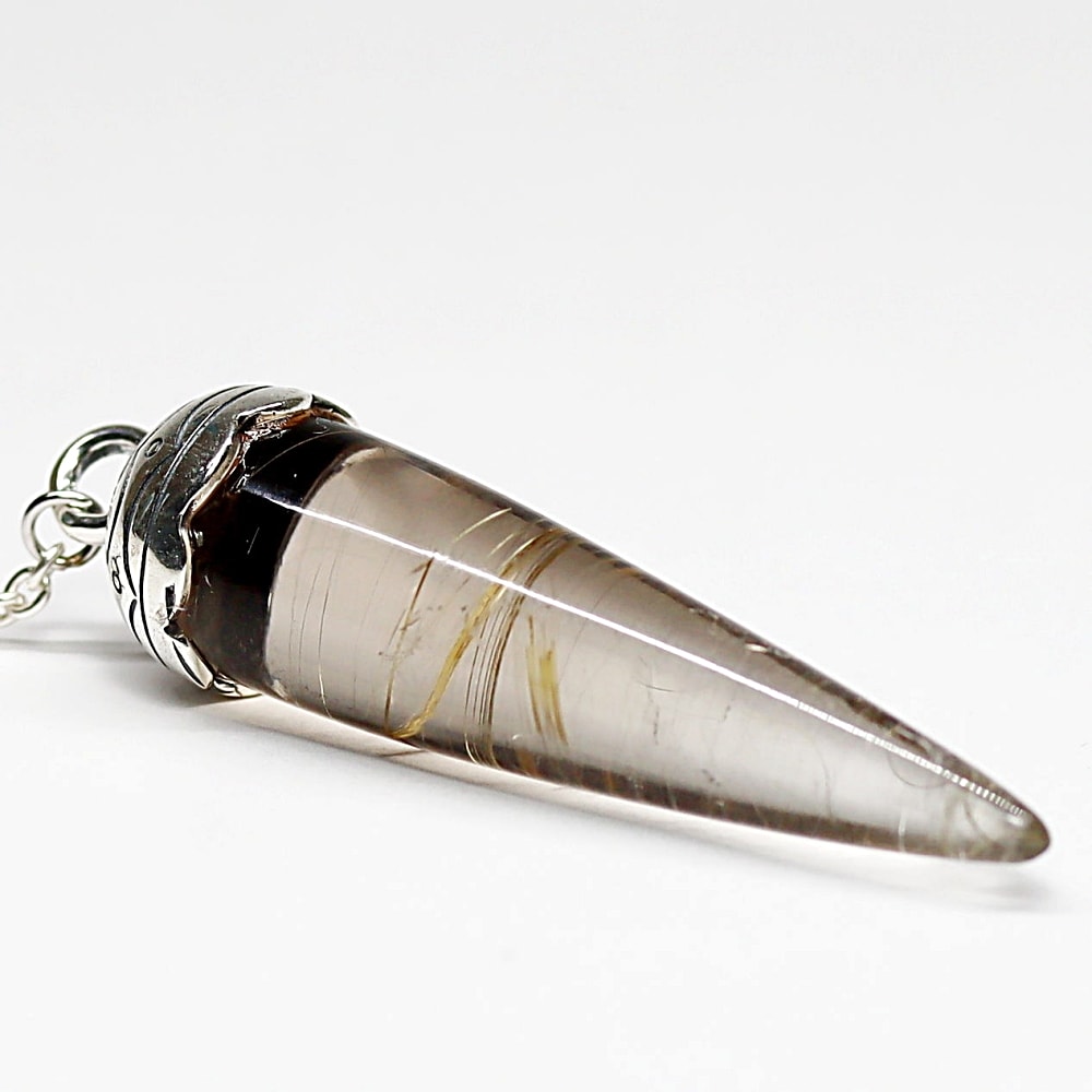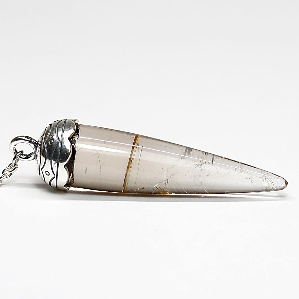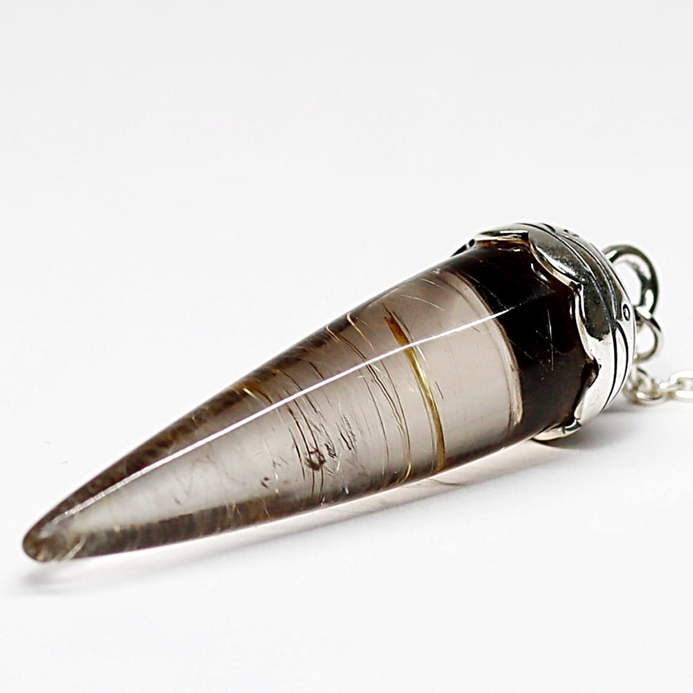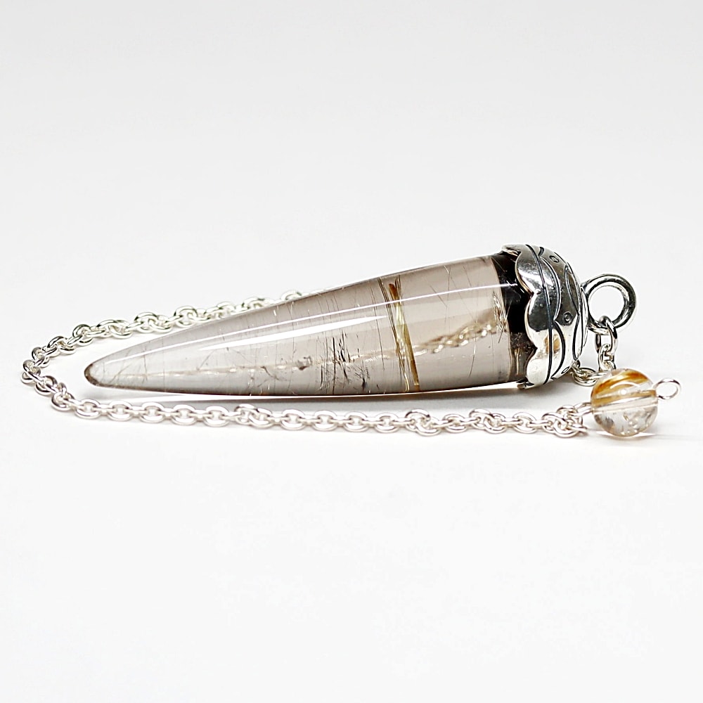 [高品質]ブラジル産ルチルクォーツペンデュラム(ラウンドタイプ/全長約5.6cm・チェーン長さ約16cm)