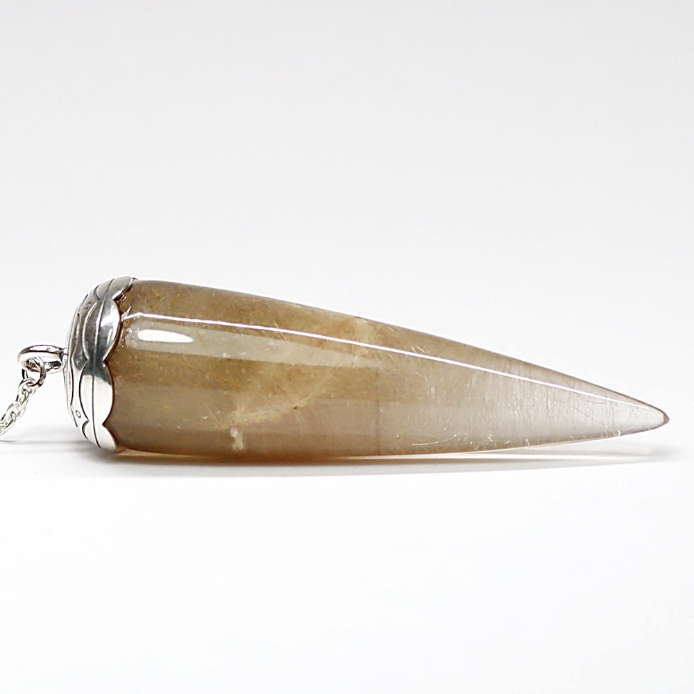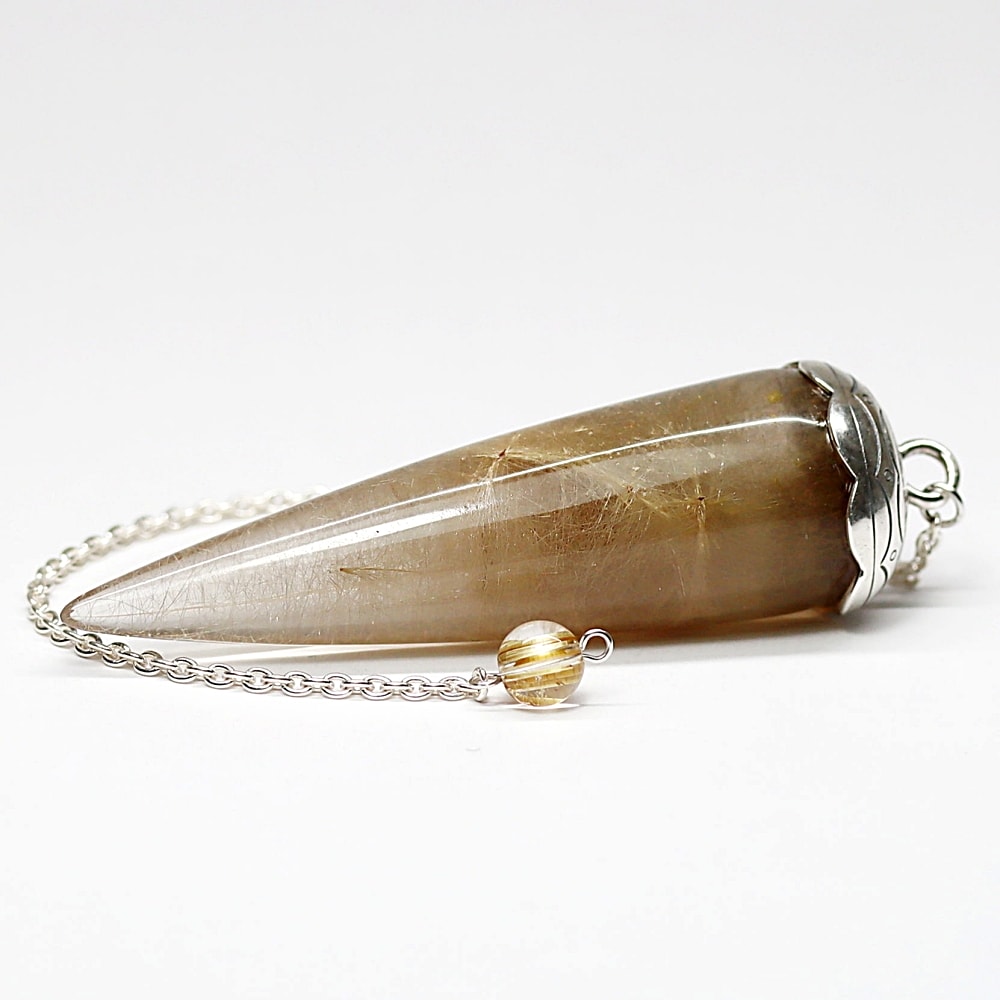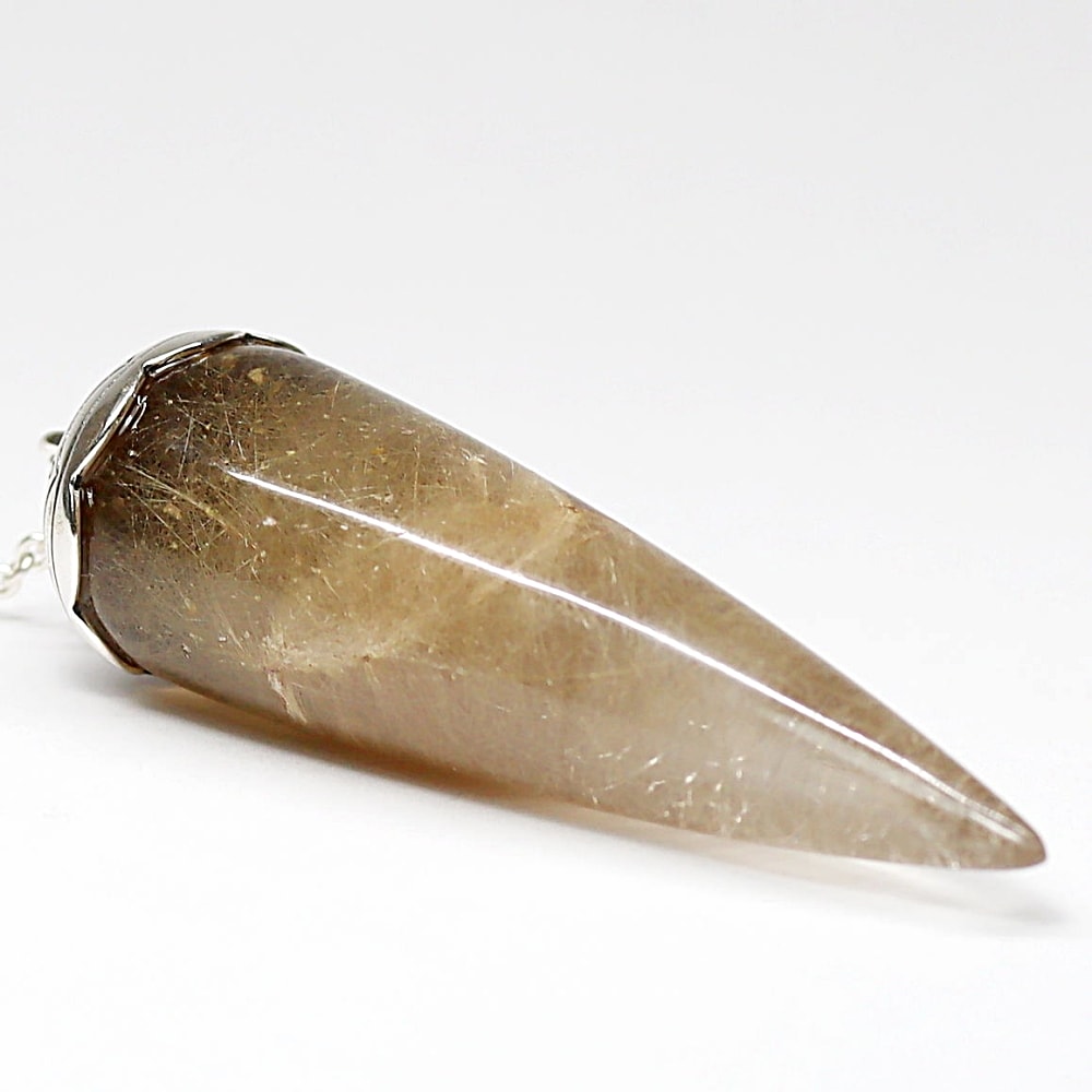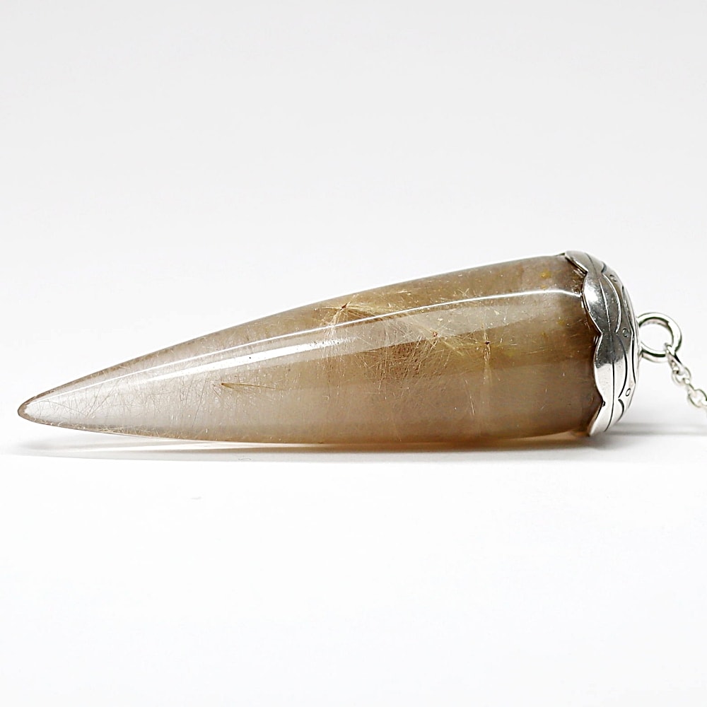 [特別価格]ブラジル産ルチルクォーツペンデュラム(ラウンドタイプ/全長約7.4cm・チェーン長さ約16cm)¥28,000クイックガイド送料