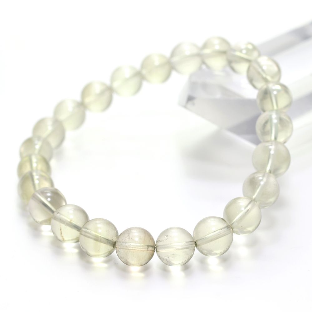 [高品質+]天然リビアングラスブレスレット(約8.5mm玉)¥19,100クイックガイド送料