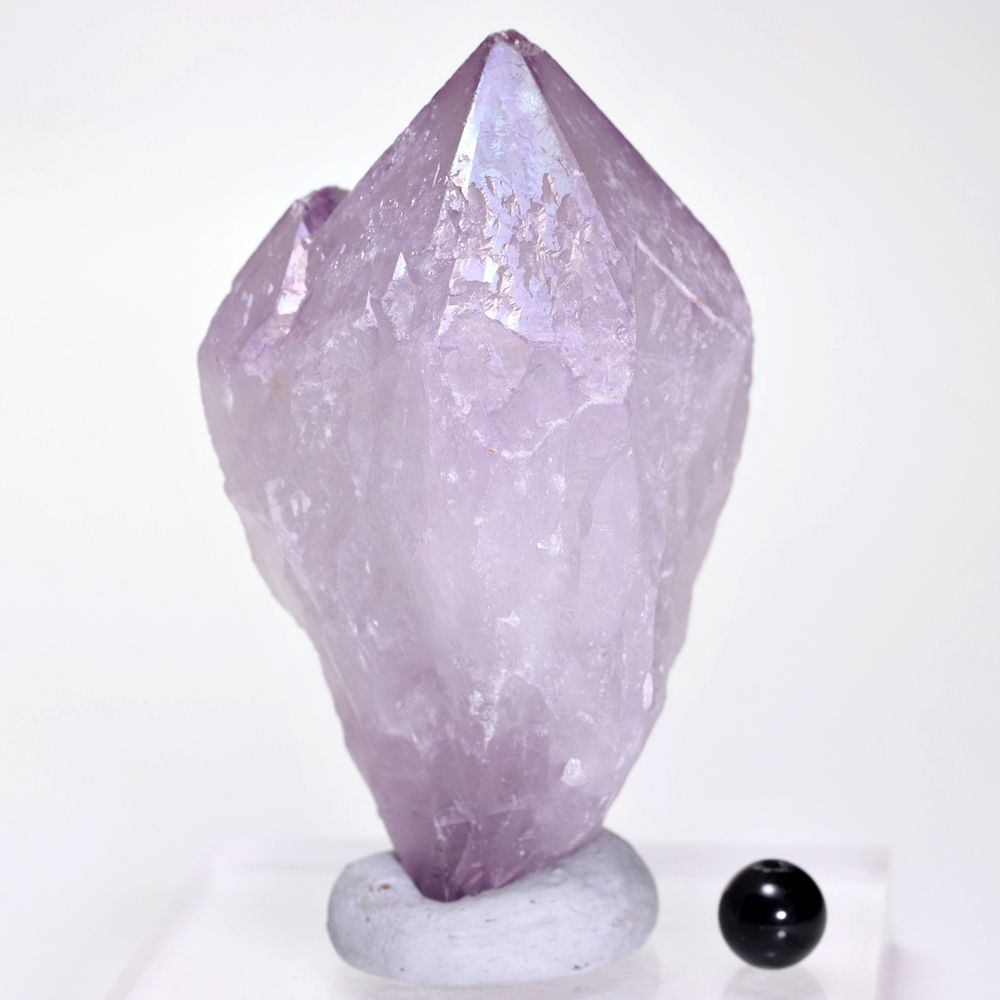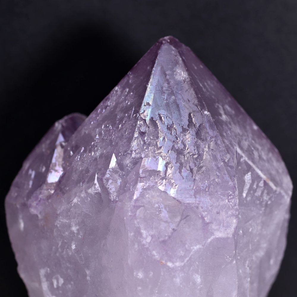 人工的な蒸着処理による「オーラ加工」とは異なり、自然環境下で生じた虹彩現象を示すアメジストは極めて限られ、とりわけ淡く優しいラベンダーパープルを呈するカルール産に現れる例は少なく、意図して入荷することが難しい“レア石”となっております。