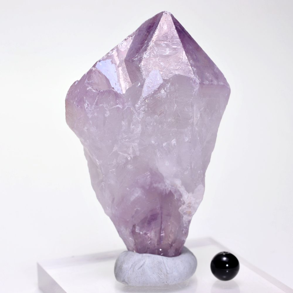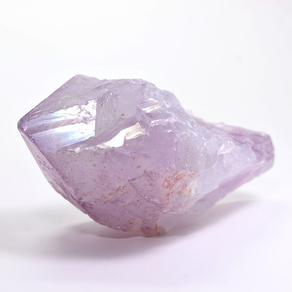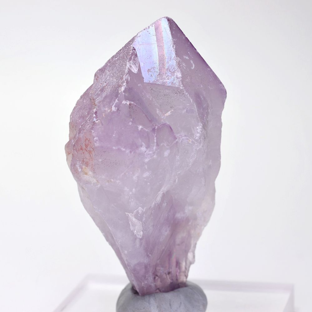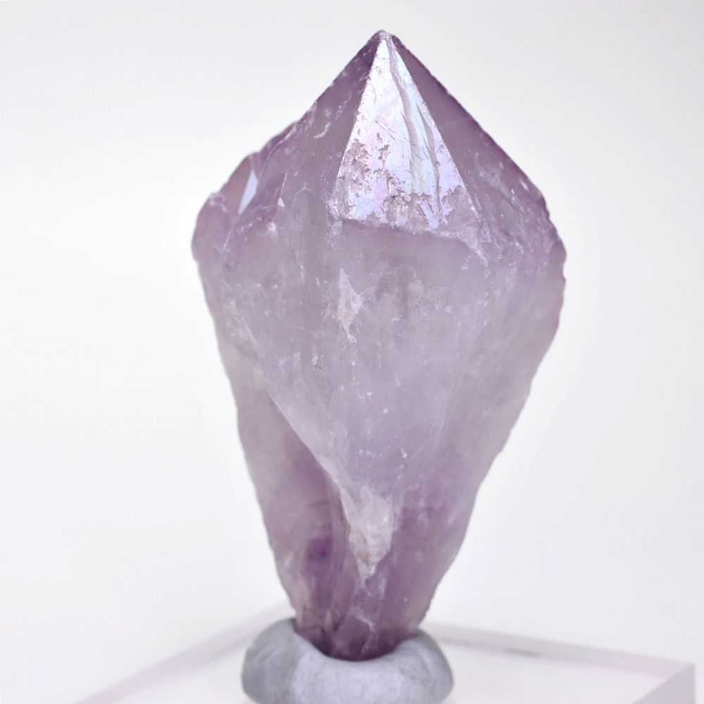 人工的な蒸着処理による「オーラ加工」とは異なり、自然環境下で生じた虹彩現象を示すアメジストは極めて限られ、とりわけ淡く優しいラベンダーパープルを呈するカルール産に現れる例は少なく、意図して入荷することが難しい“レア石”となっております。