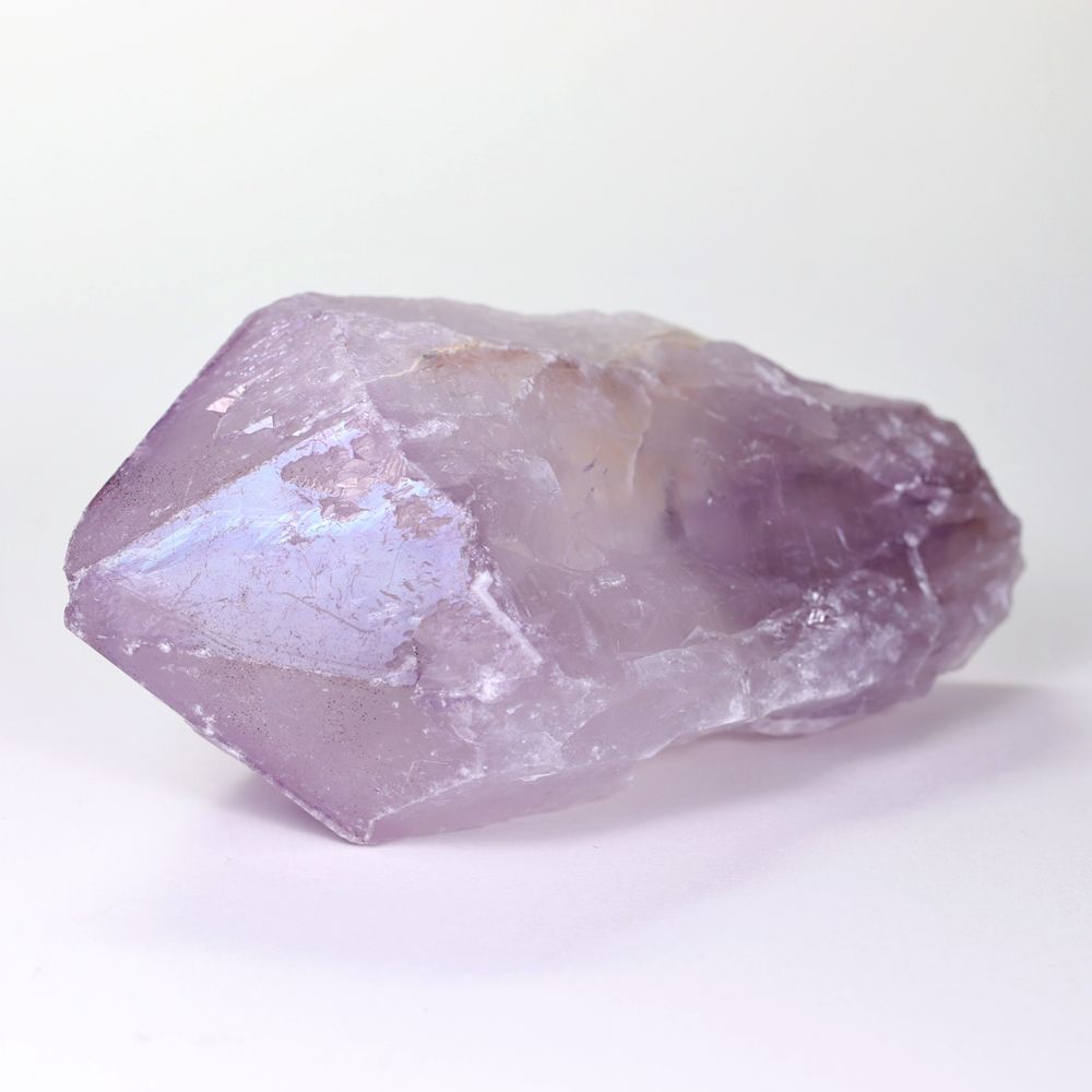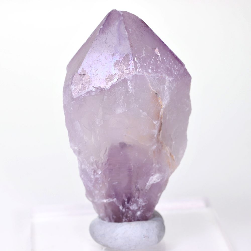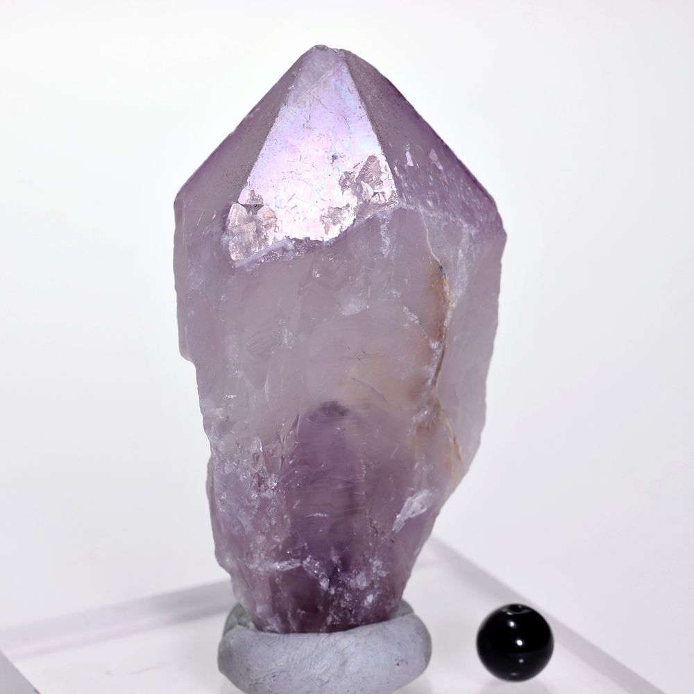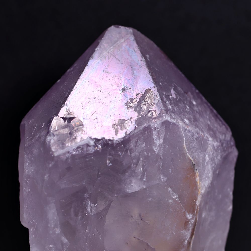 人工的な蒸着処理による「オーラ加工」とは異なり、自然環境下で生じた虹彩現象を示すアメジストは極めて限られ、とりわけ淡く優しいラベンダーパープルを呈するカルール産に現れる例は少なく、意図して入荷することが難しい“レア石”となっております。