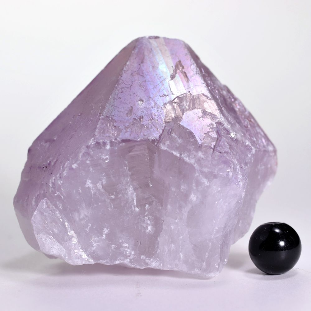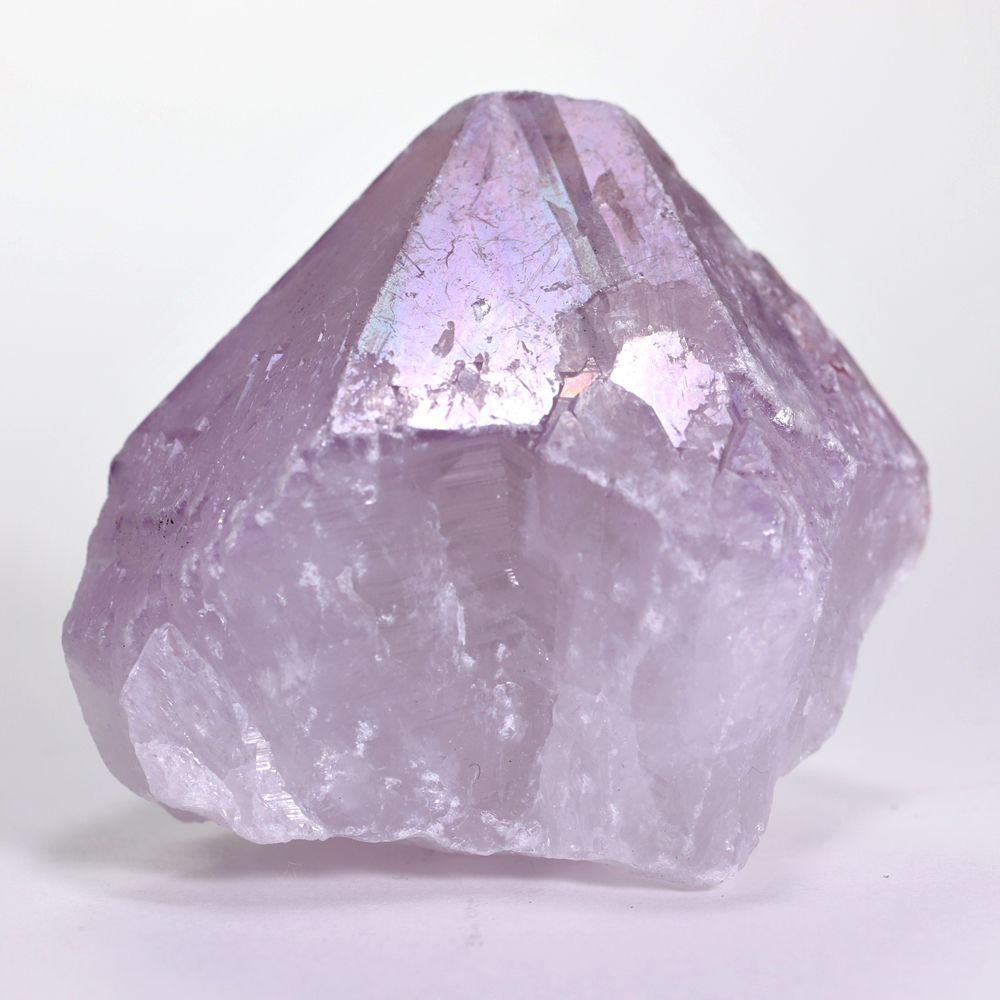 人工的な蒸着処理による「オーラ加工」とは異なり、自然環境下で生じた虹彩現象を示すアメジストは極めて限られ、とりわけ淡く優しいラベンダーパープルを呈するカルール産に現れる例は少なく、意図して入荷することが難しい“レア石”となっております。