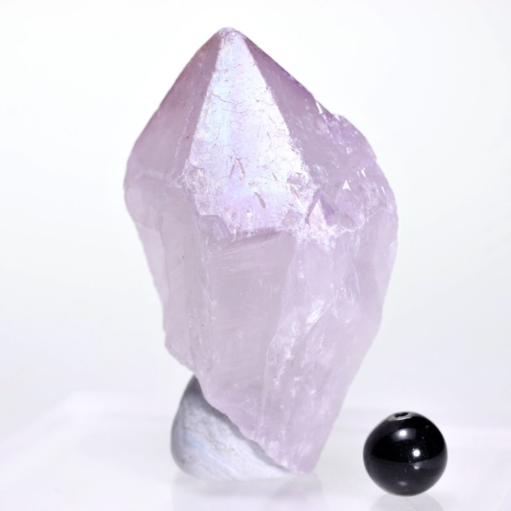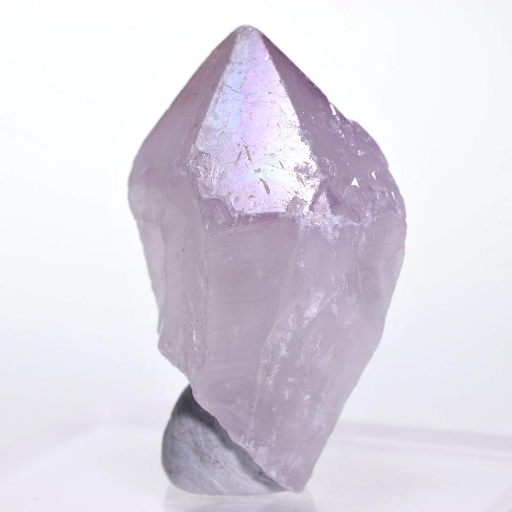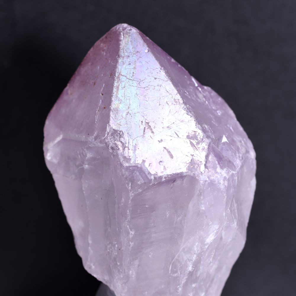 人工的な蒸着処理による「オーラ加工」とは異なり、自然環境下で生じた虹彩現象を示すアメジストは極めて限られ、とりわけ淡く優しいラベンダーパープルを呈するカルール産に現れる例は少なく、意図して入荷することが難しい“レア石”となっております。