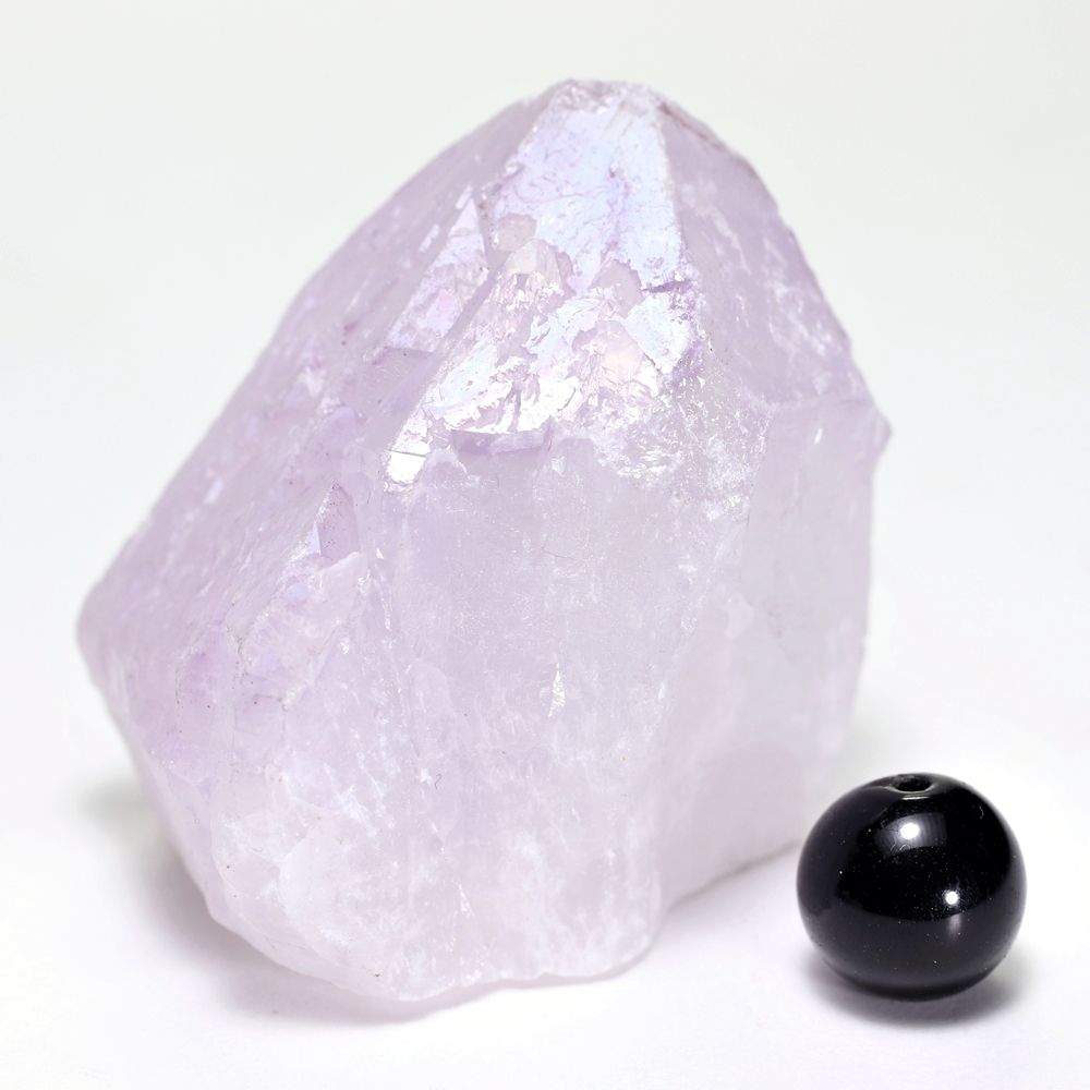人工的な蒸着処理による「オーラ加工」とは異なり、自然環境下で生じた虹彩現象を示すアメジストは極めて限られ、とりわけ淡く優しいラベンダーパープルを呈するカルール産に現れる例は少なく、意図して入荷することが難しい“レア石”となっております。