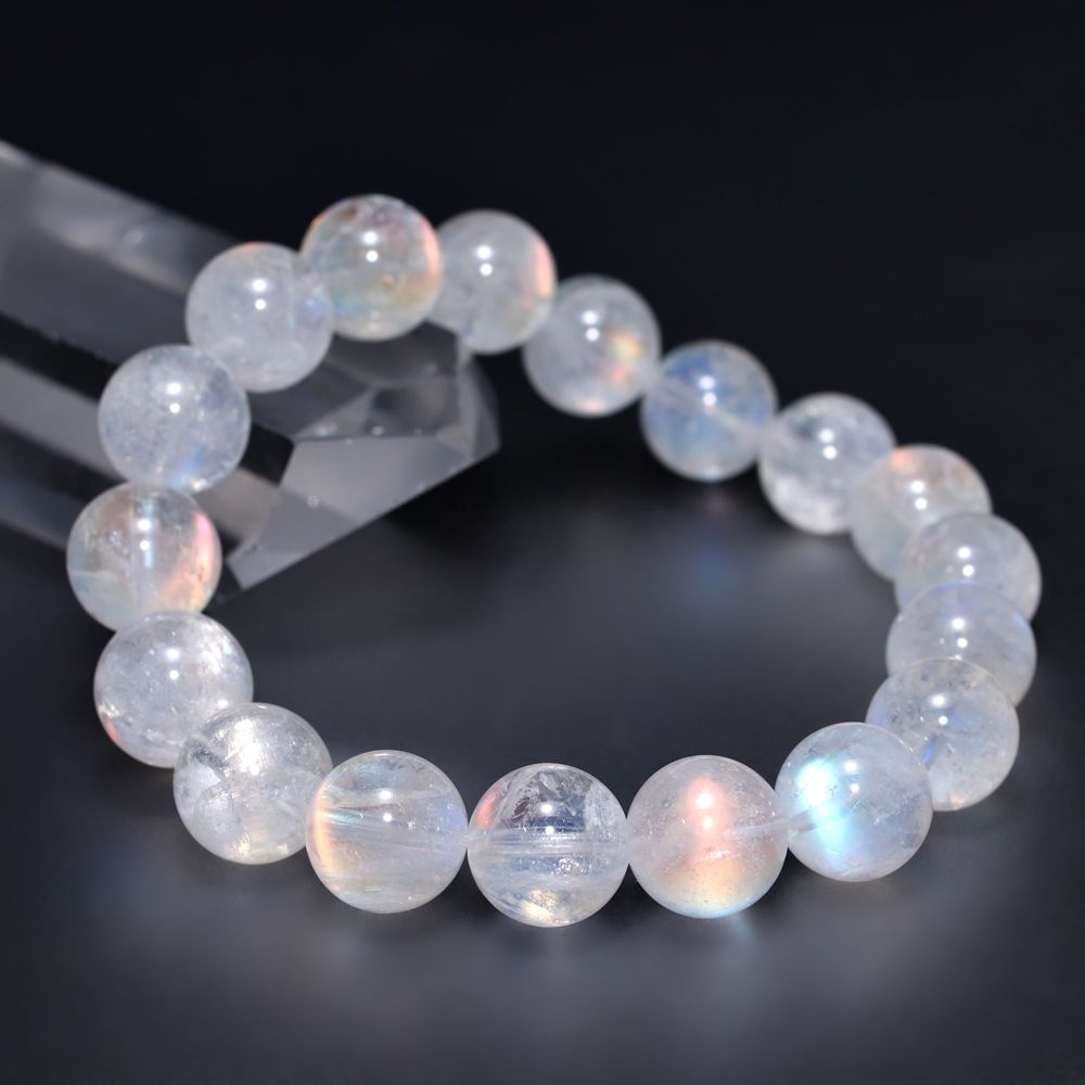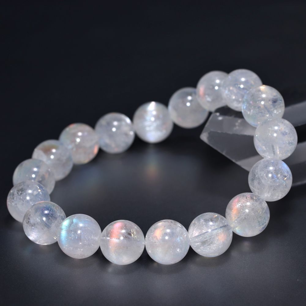 [高品質]別鉱床マダガスカル産ホワイトラブラドライトブレスレット/レインボームーンストーン(約11.5mm玉)
