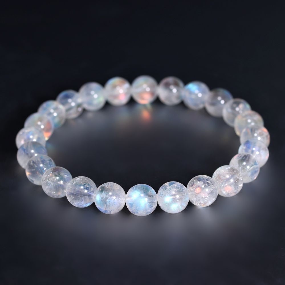 [高品質]別鉱床マダガスカル産ホワイトラブラドライトブレスレット/レインボームーンストーン(約8mm玉)