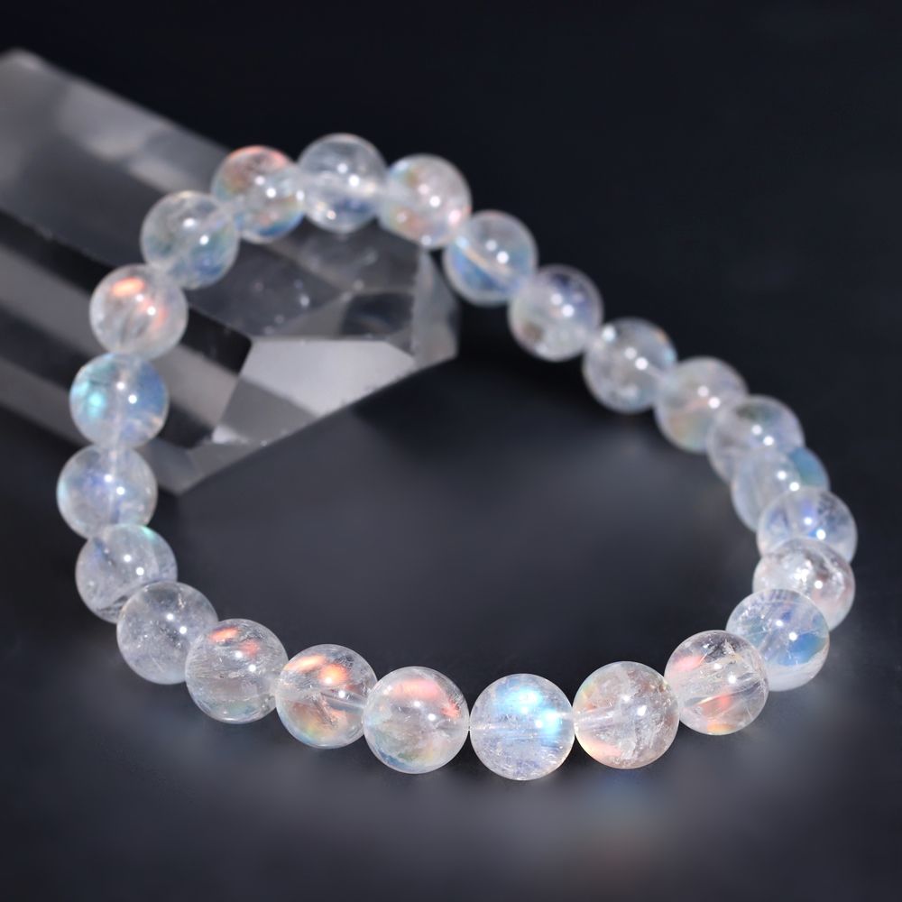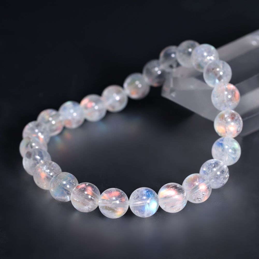 [高品質]別鉱床マダガスカル産ホワイトラブラドライトブレスレット/レインボームーンストーン(約8mm玉)¥35,800クイックガイド送料