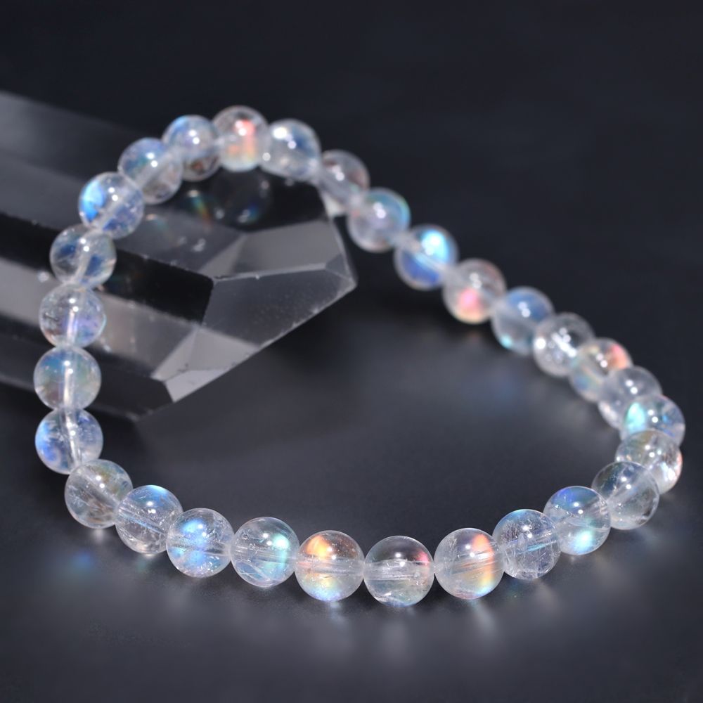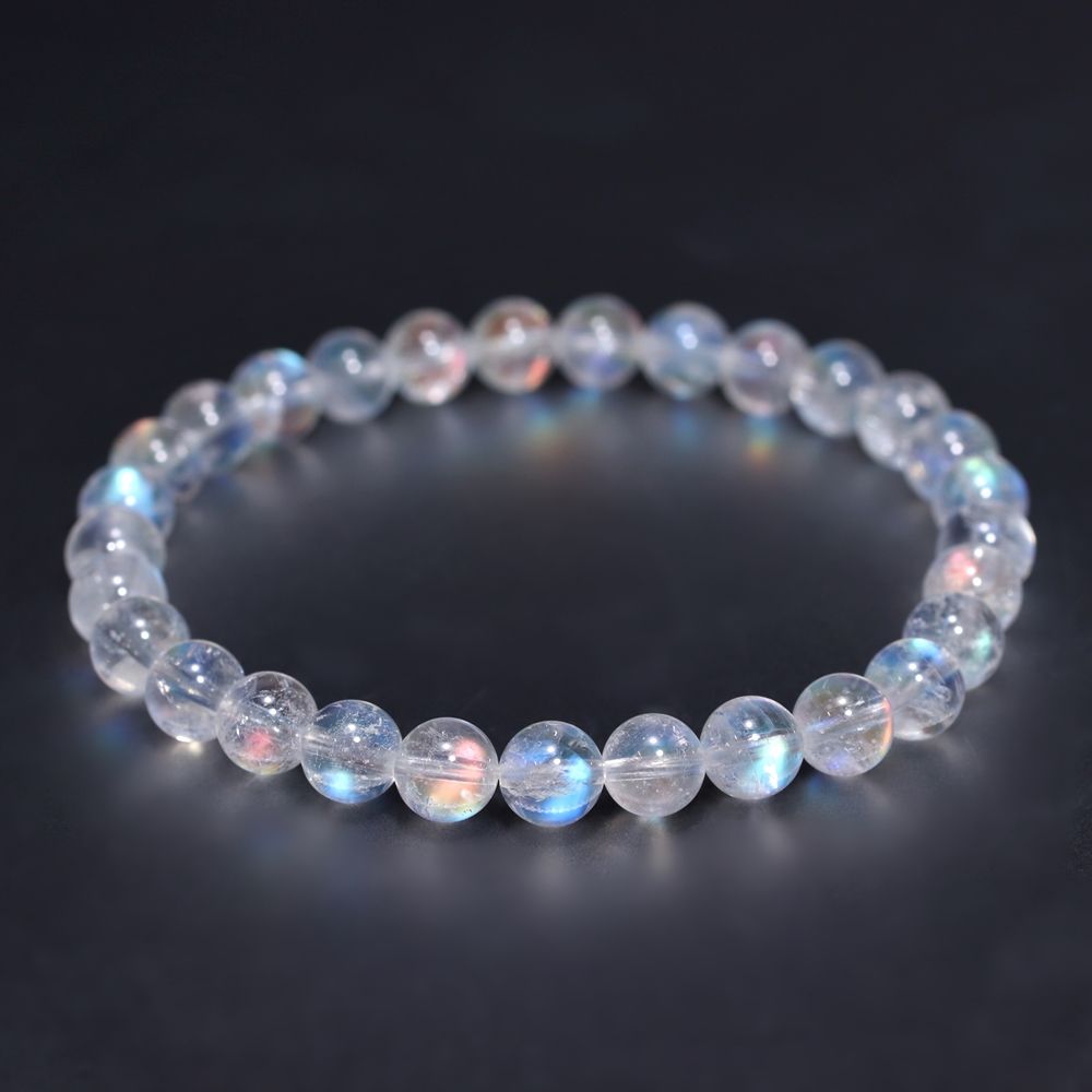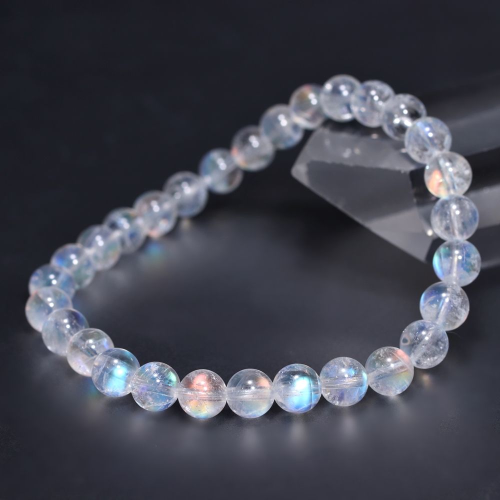 [高品質]別鉱床マダガスカル産ホワイトラブラドライトブレスレット/レインボームーンストーン(約6.5mm玉)
