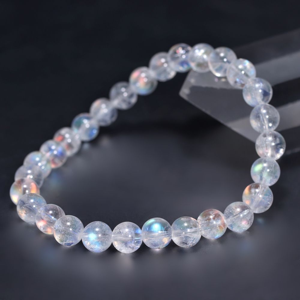 [高品質]別鉱床マダガスカル産ホワイトラブラドライトブレスレット/レインボームーンストーン(約6mm玉)