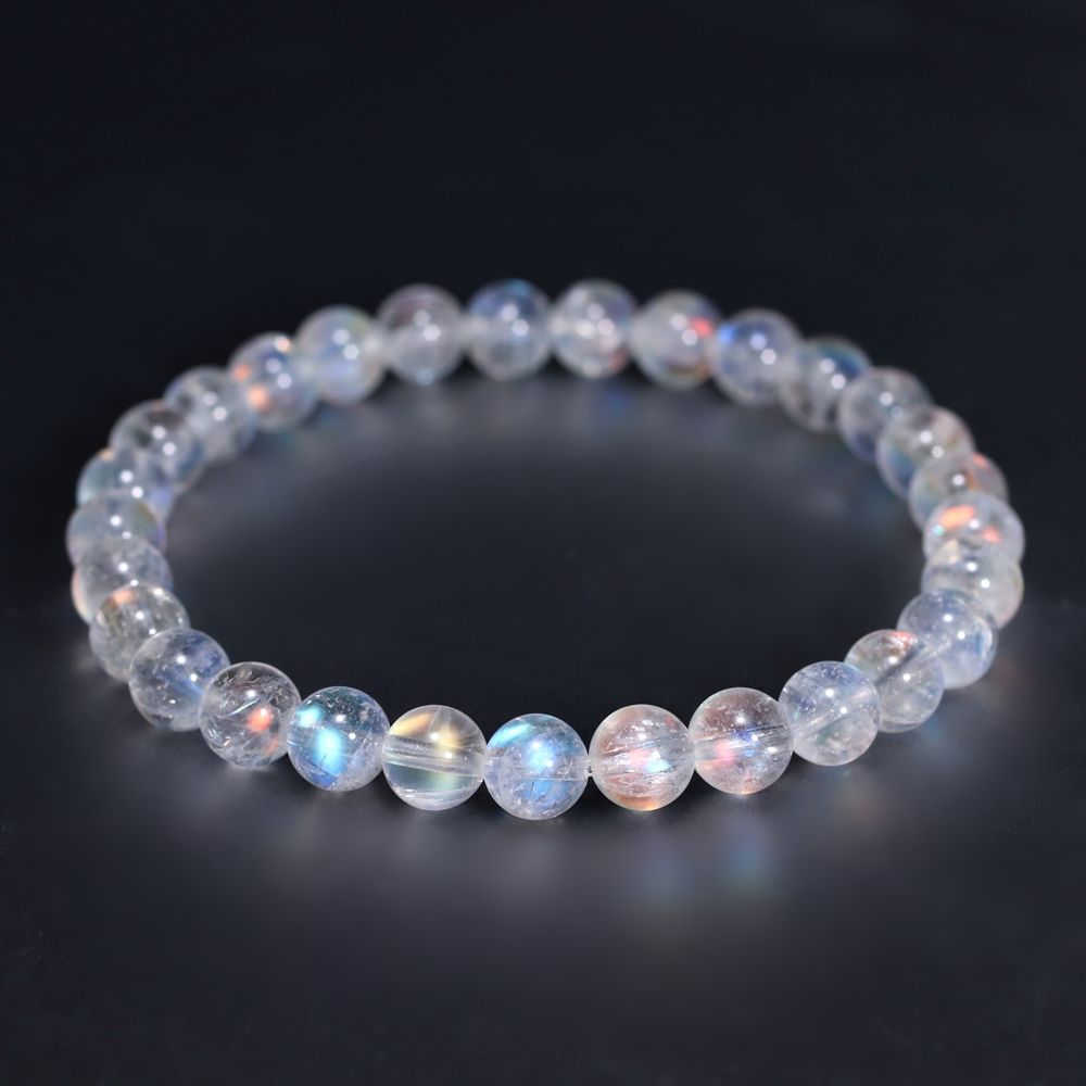 [高品質]別鉱床マダガスカル産ホワイトラブラドライトブレスレット/レインボームーンストーン(約6mm玉)