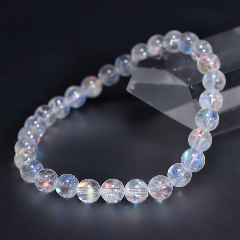 [高品質]別鉱床マダガスカル産ホワイトラブラドライトブレスレット/レインボームーンストーン(約6mm玉)¥19,400クイックガイド送料
