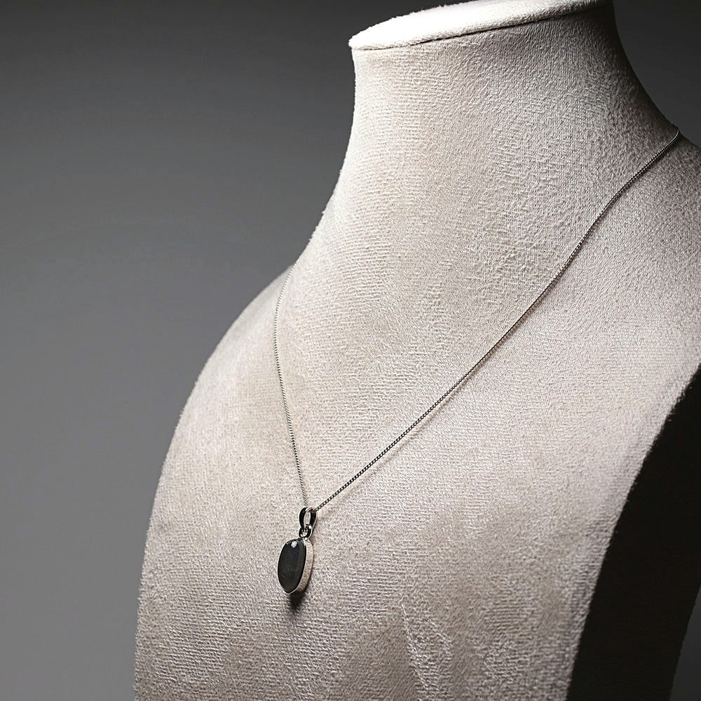 こちらのお品は、美しい艶感と、透明度を保ち、ラブラドレッセンスができる限り正面に現れる、素晴らしい【トップ品質】のルースを使用してペンダントに仕上げました。