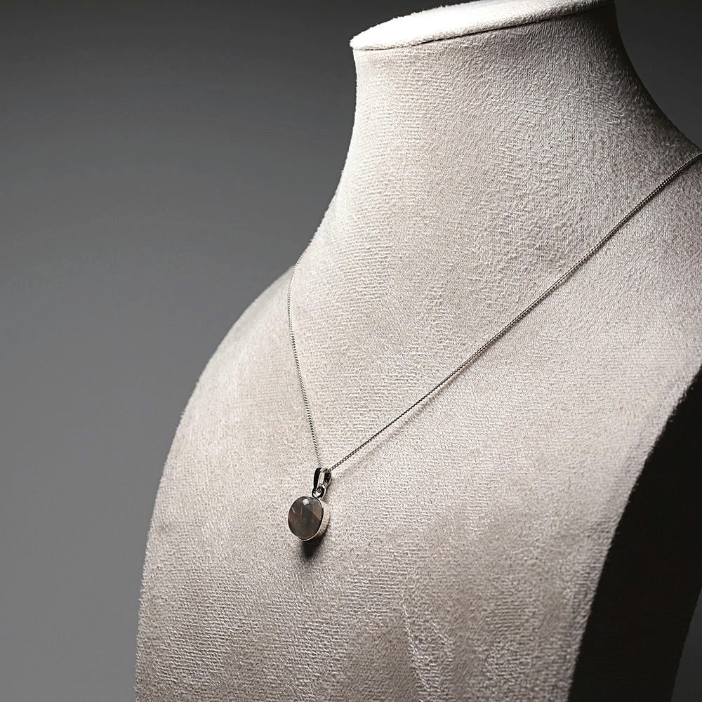 こちらのお品は、美しい艶感と、透明度を保ち、ラブラドレッセンスができる限り正面に現れる、素晴らしい【トップ品質】のルースを使用してペンダントに仕上げました。