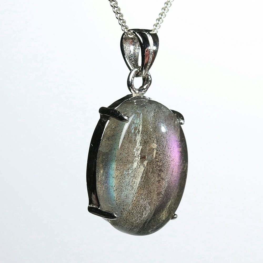 [高品質]ラブラドライトペンダントトップ(シルバー925・ピンクパープル)