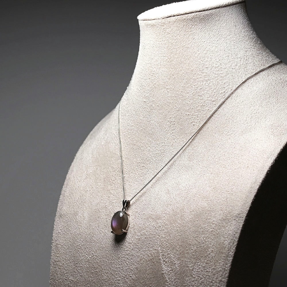 艶感があるルースにラブラドレッセンスが現れるクオリティー高いペンダントに仕上げました。