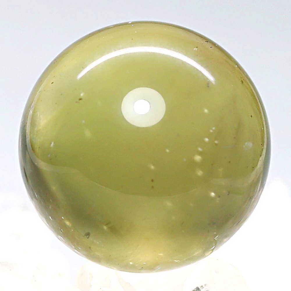 ご覧のお品は、エジプト西部のサハラ砂漠で産出される希少な天然ガラス「リビアングラス」を、美しい球体へと磨き上げた丸玉でございます。