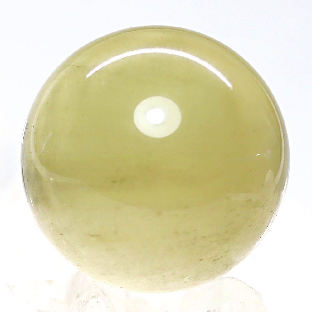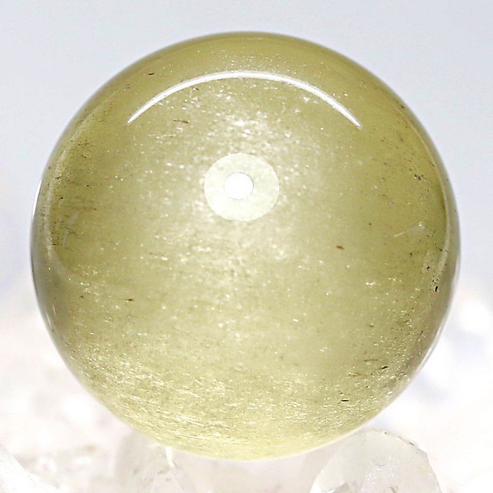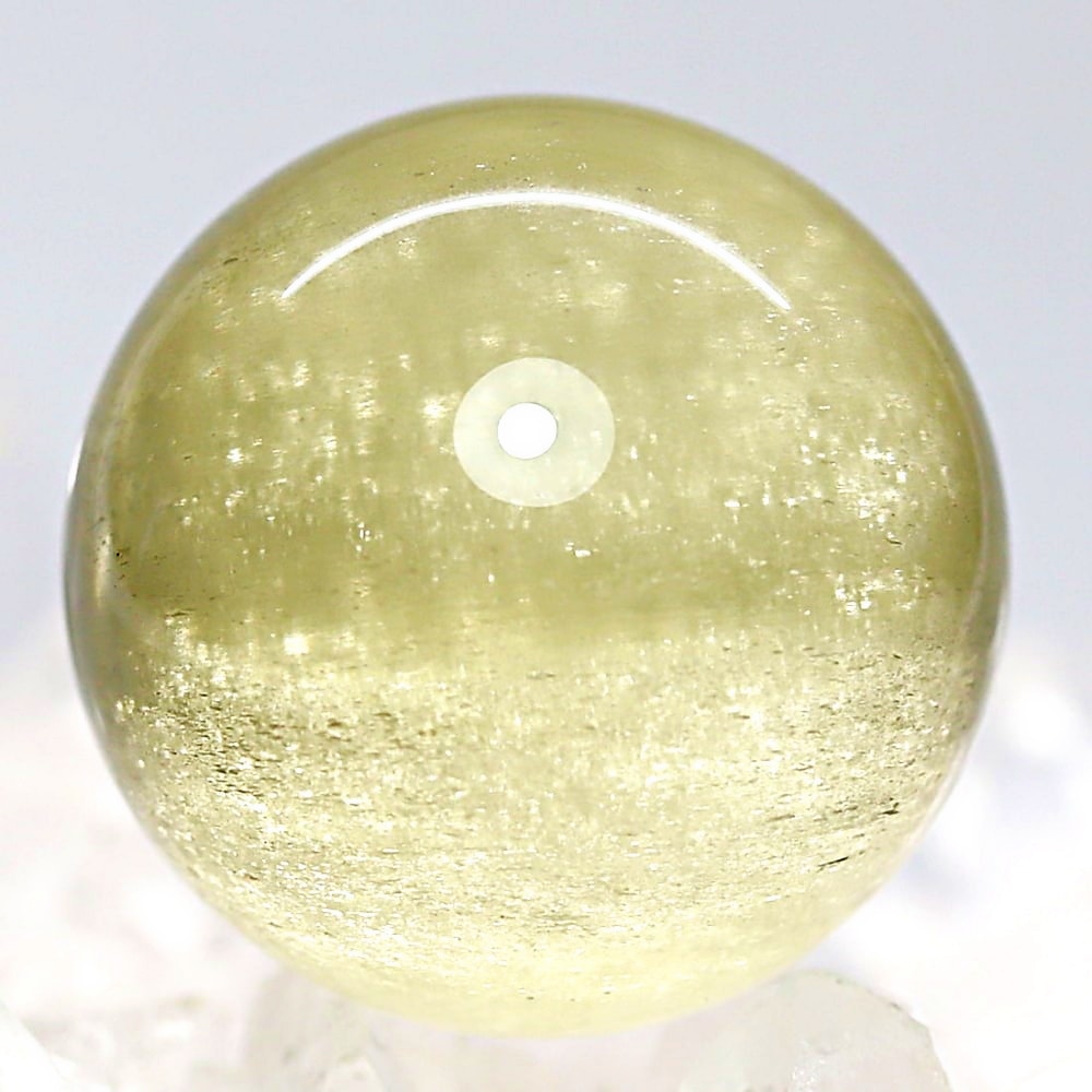 ご覧のお品は、エジプト西部のサハラ砂漠で産出される希少な天然ガラス「リビアングラス」を、美しい球体へと磨き上げた丸玉でございます。