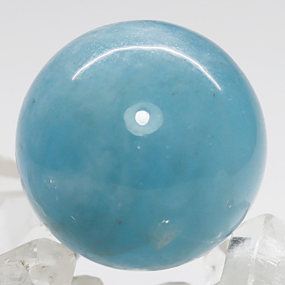 ご覧のお品は良質な天然アクアマリン原石を削り出し磨き上げた天然石丸玉(スフィア)でございます。
