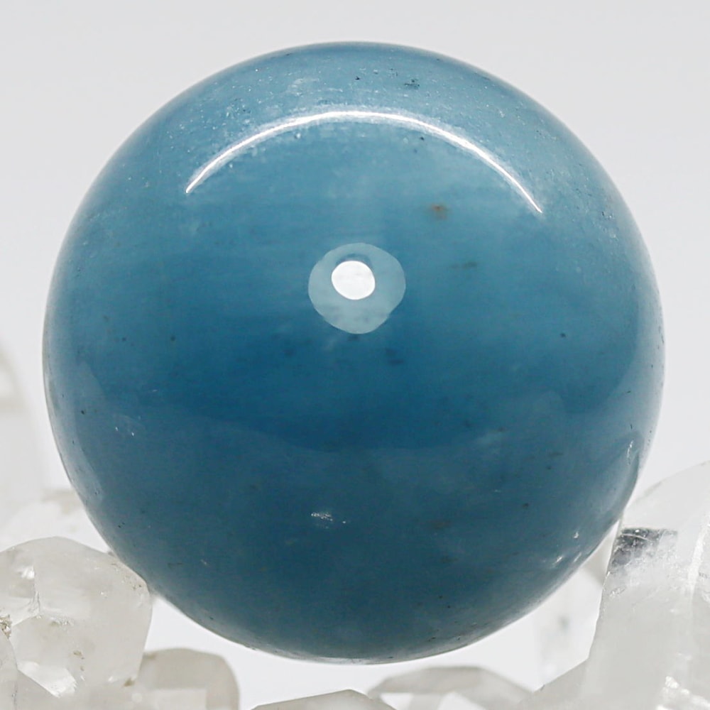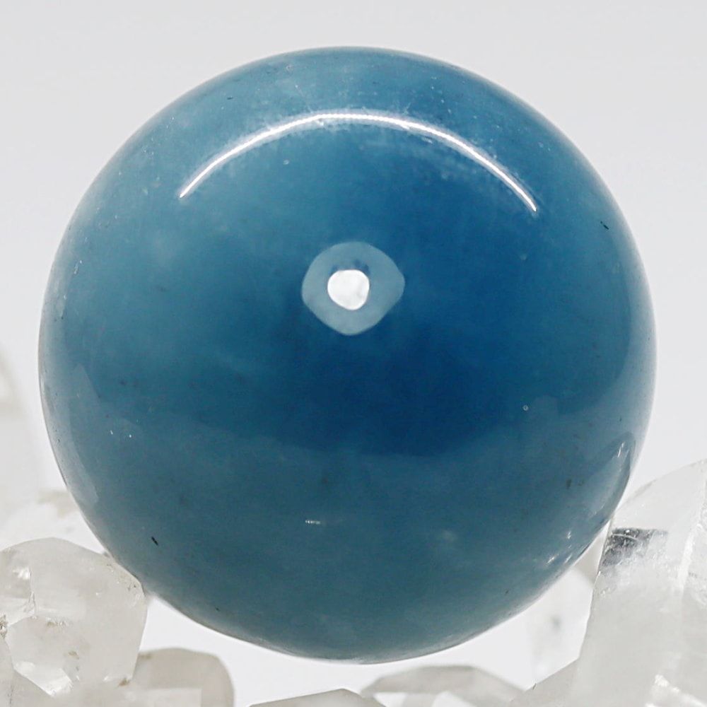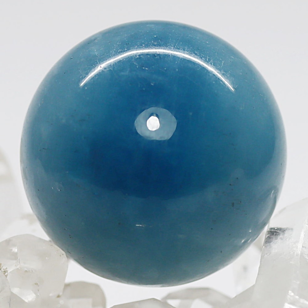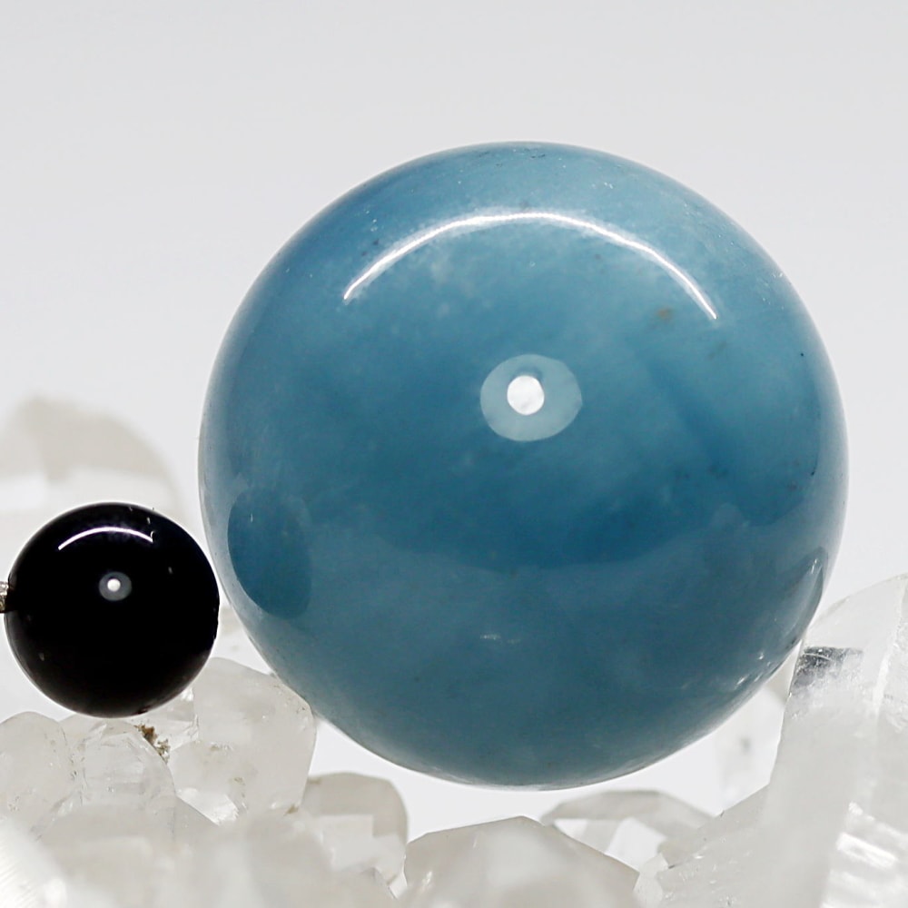 原石を多く必要とする丸玉はブレスレットに使われるアクアマリンビーズよりも品質低いものが多く出回りますが、ご覧のアクアマリン丸玉は “発色の良い鮮やかな青色が美しい高品質” です。