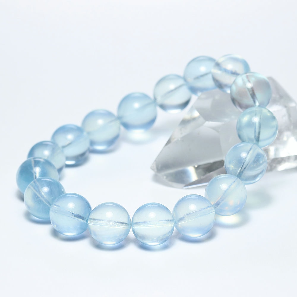 アクアマリンは近年の加工技術の高さから、とても綺麗なブレスレットがお求めやすい価格で流通するようになりました。 しかし一方、従来では考えられなかったような濃い青みや透明度が強調された、本来のアクアマリンブルーを思い出せなくなってしまうようなものが増えてきました。