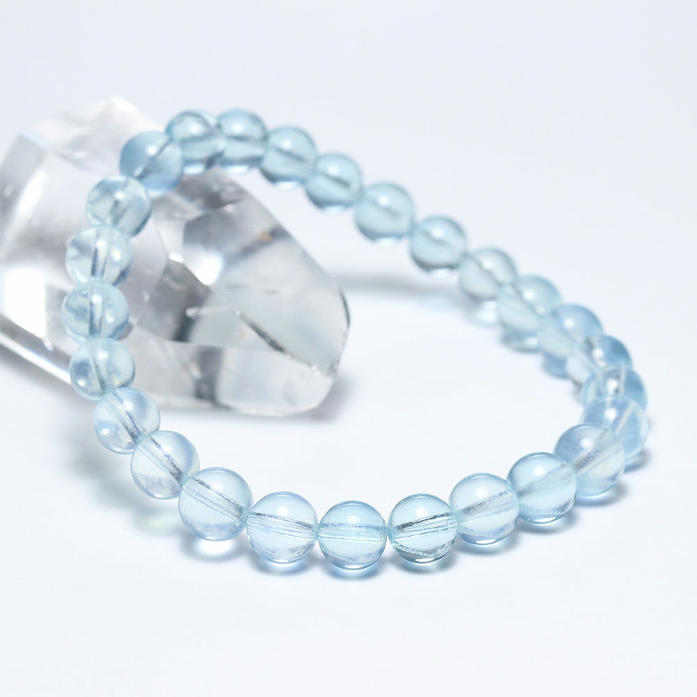 アクアマリンは近年の加工技術の高さから、とても綺麗なブレスレットがお求めやすい価格で流通するようになりました。 しかし一方、従来では考えられなかったような濃い青みや透明度が強調された、本来のアクアマリンブルーを思い出せなくなってしまうようなものが増えてきました。