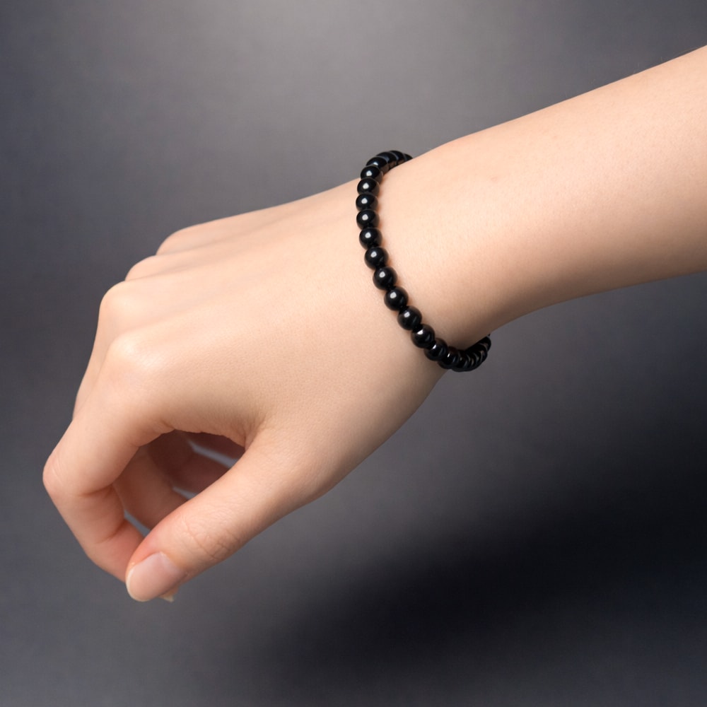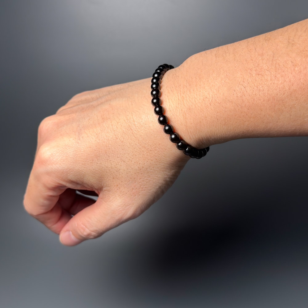 光をほとんど通さない漆黒の美しさを放つ「山東省産の黒水晶(6mm玉)」を使用し、ご希望の腕周りサイズで「モリオンブレスレット」をお作りいたします。