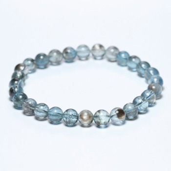 アクアマリンにダークカラーの鉱物が混ざり合うスターモスアクアマリンブレスレットでございます。