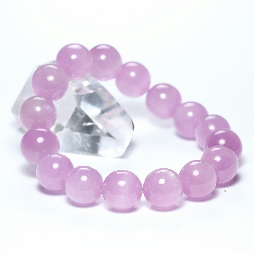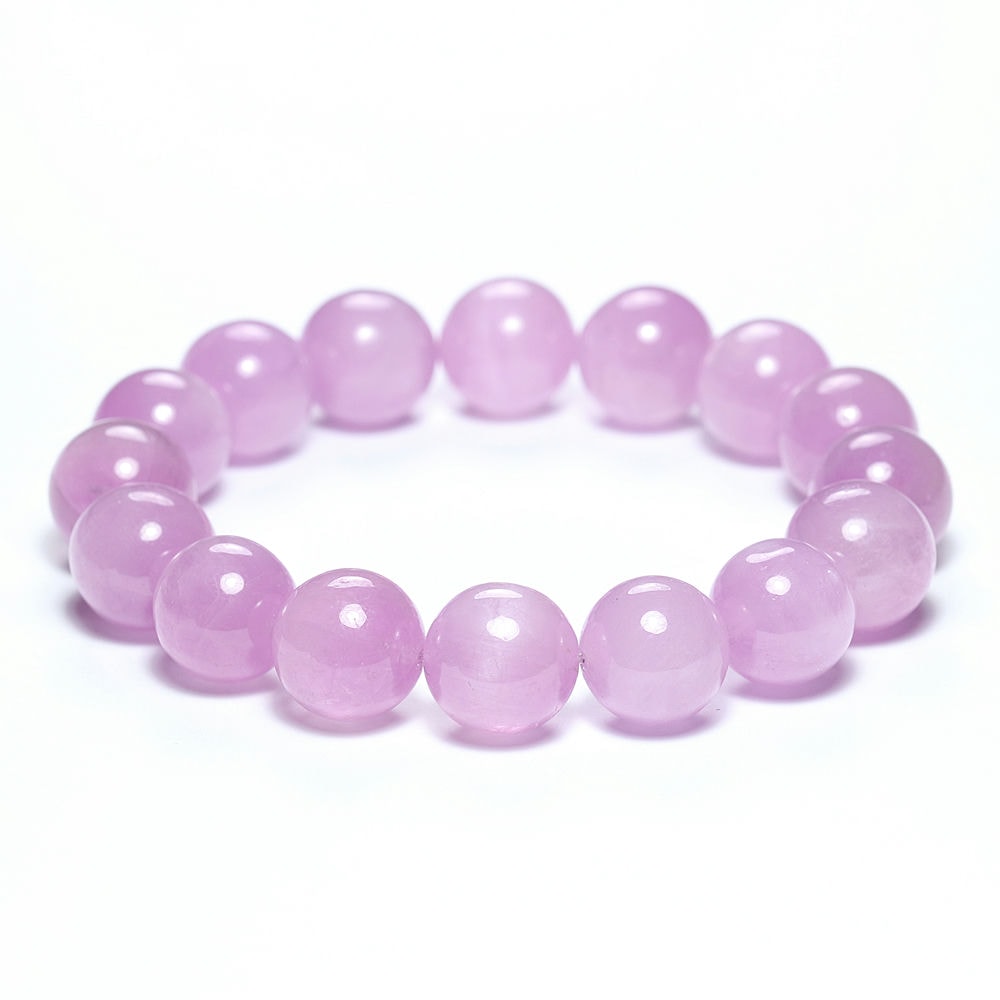 [高品質]ナイジェリア産ピンククンツァイトブレスレット(約13.5mm玉/一部キャッツアイ入り)