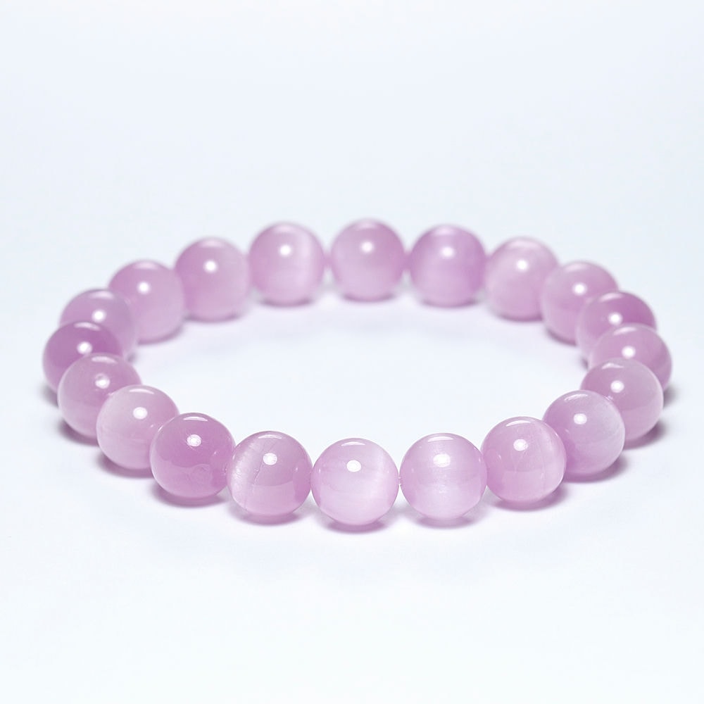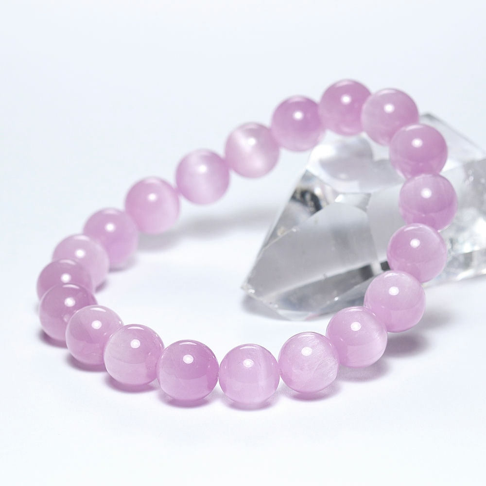 [高品質]ナイジェリア産ピンククンツァイトブレスレット(約9.5mm玉/一部キャッツアイ入り)