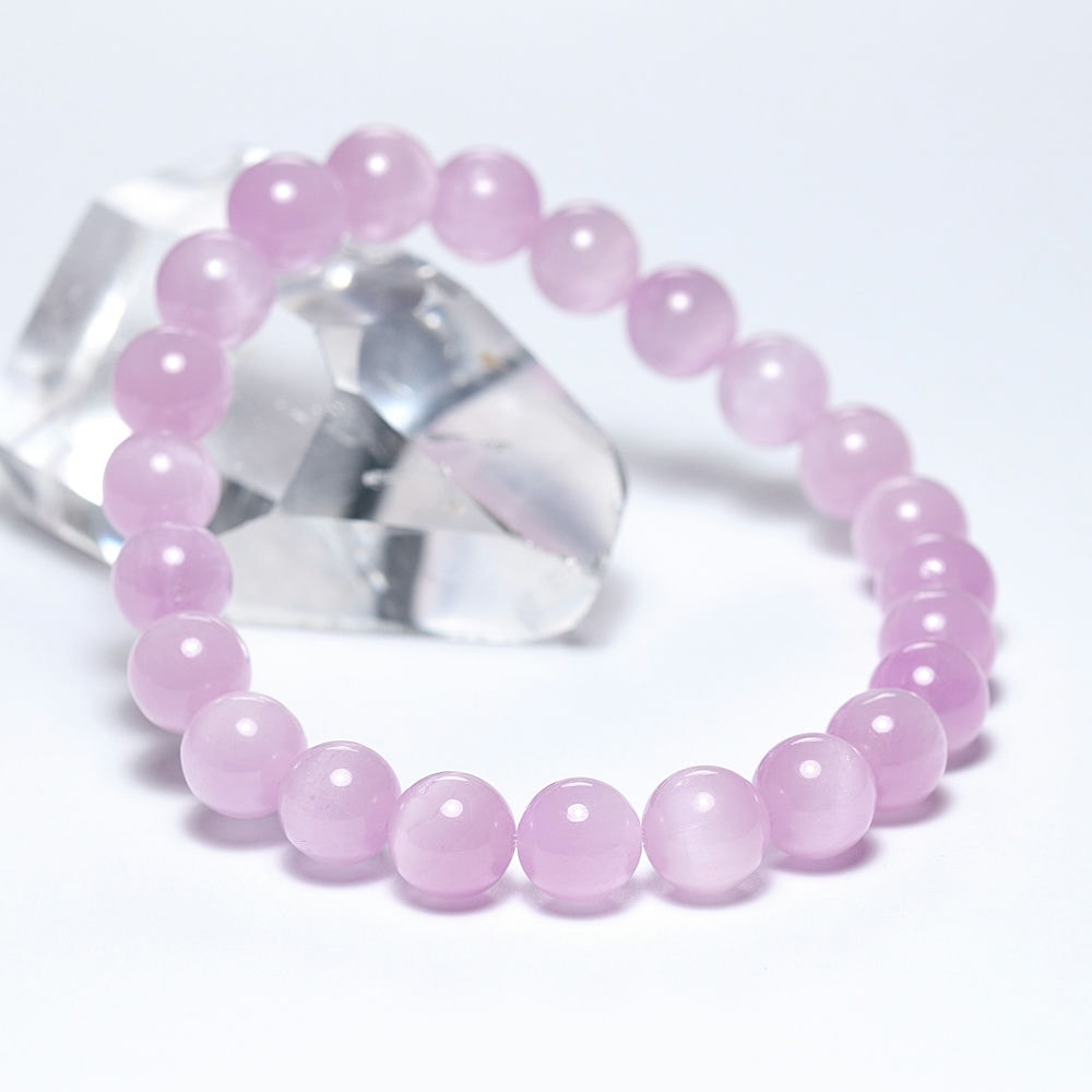 [高品質]ナイジェリア産ピンククンツァイトブレスレット(約8mm玉/一部キャッツアイ入り)¥12,700クイックガイド送料