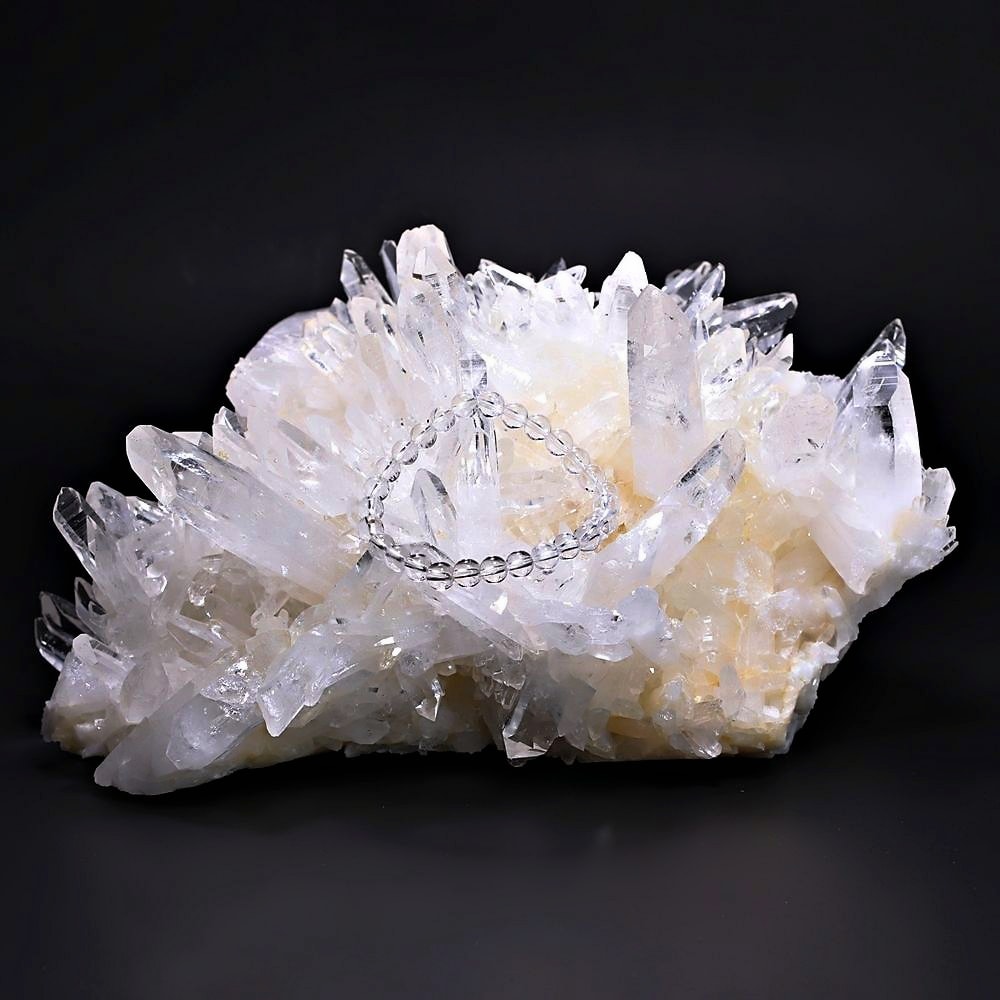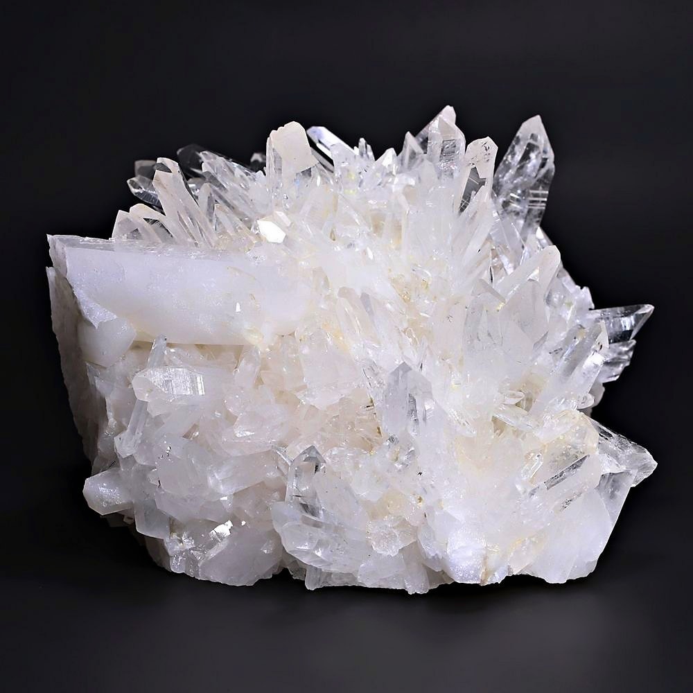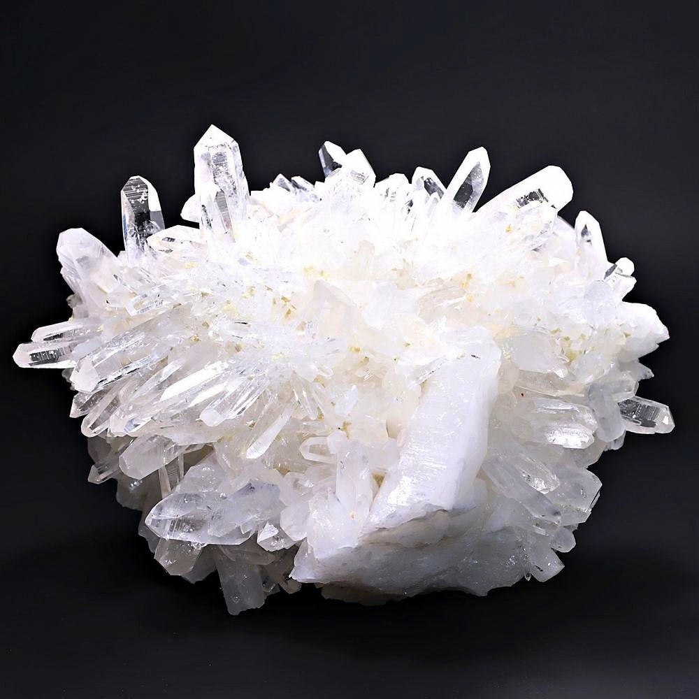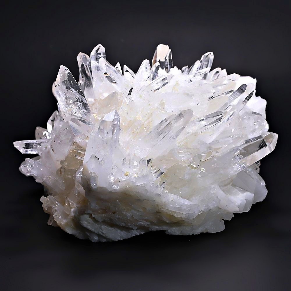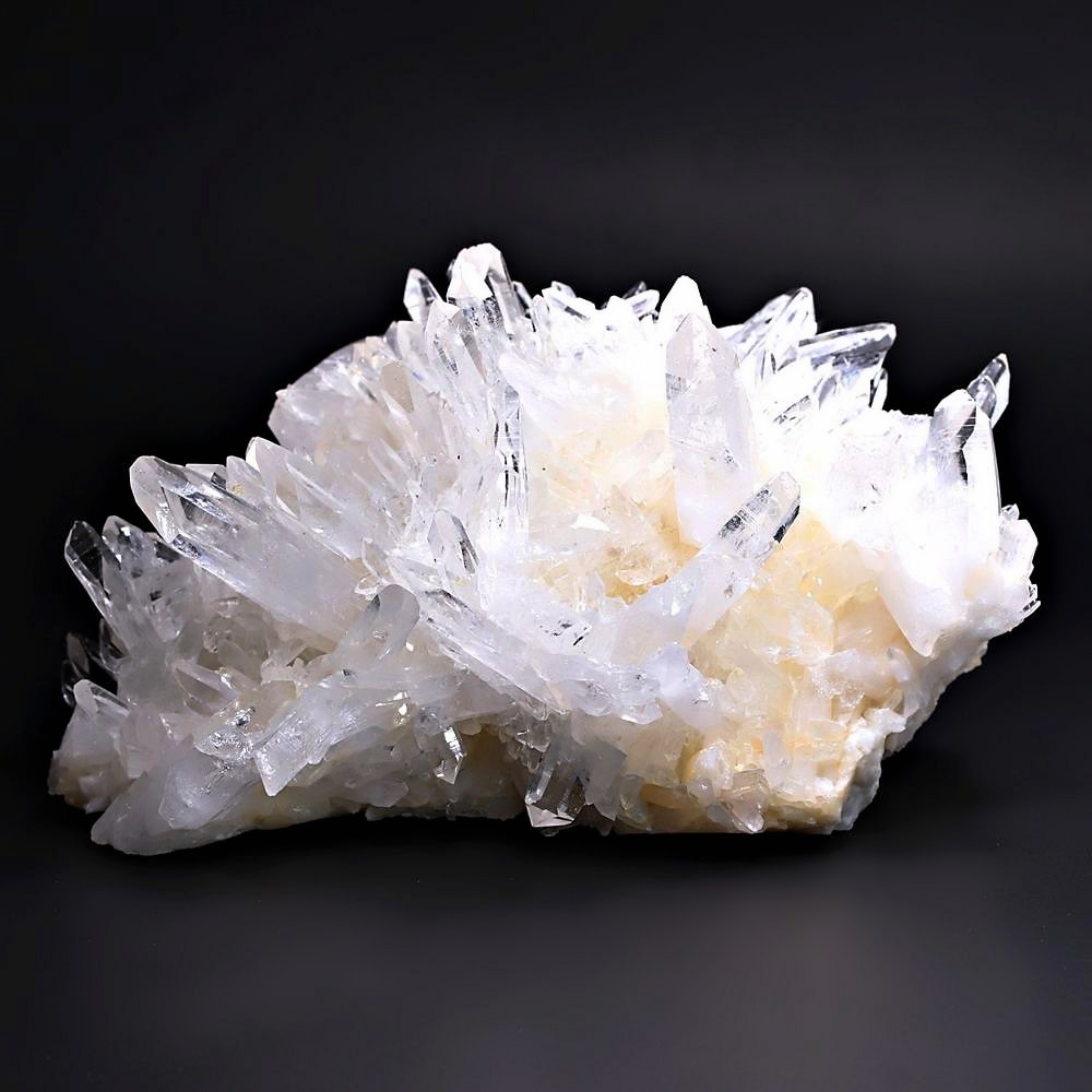 ご覧のお品は、高い透明度を誇る清らかな結晶が育つ見事な大型クラスターです。 放射状に突き出した結晶に差し込む光が複雑に反射し、無数の輝きを放つまばゆい美しさに、ただただ見惚れてしまいます。