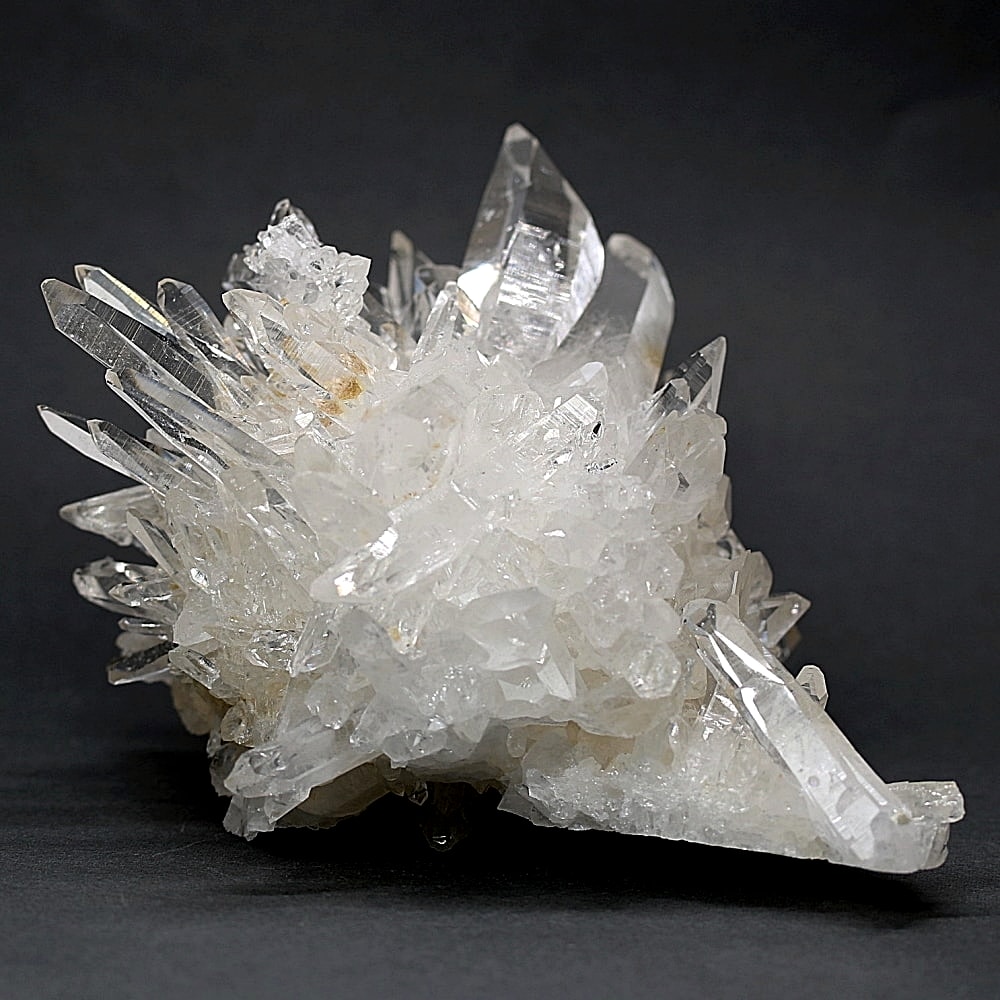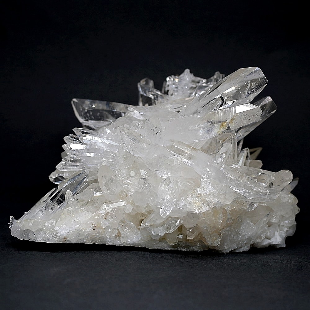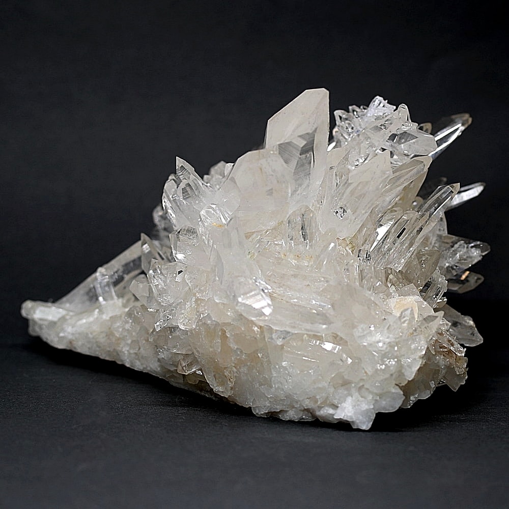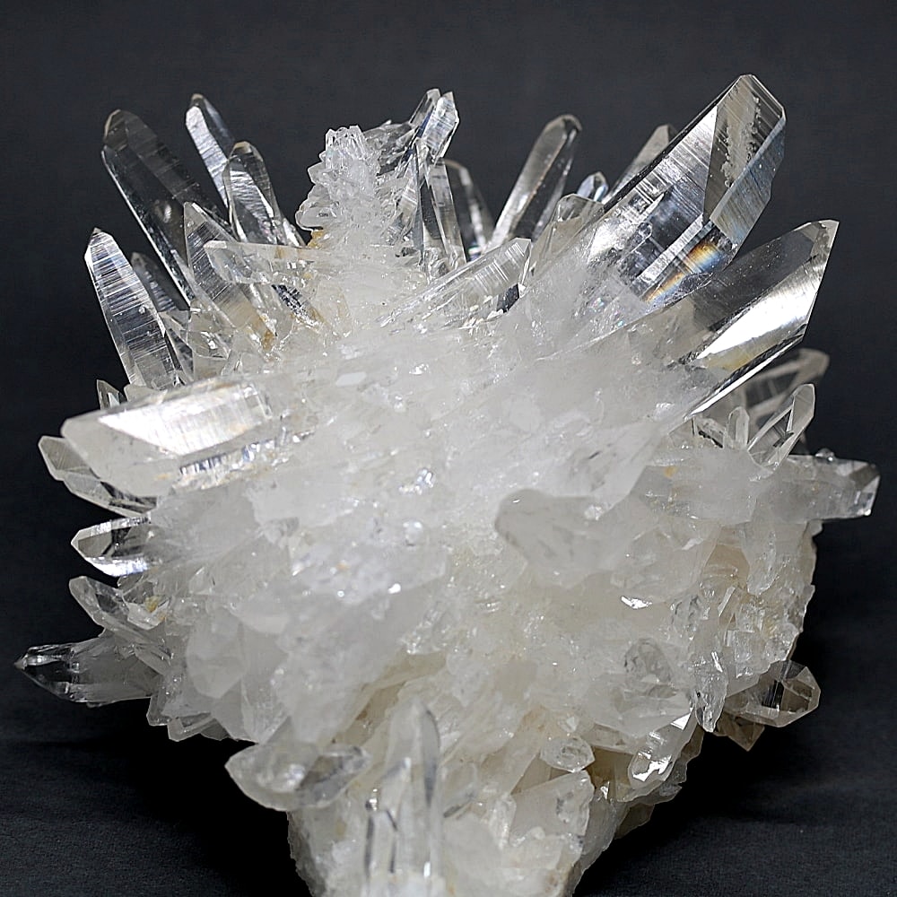 ご覧のお品は、高い透明度を誇る清らかな結晶が育つ見事な大型クラスターです。 放射状に突き出した結晶に差し込む光が複雑に反射し、無数の輝きを放つまばゆい美しさに、ただただ見惚れてしまいます。