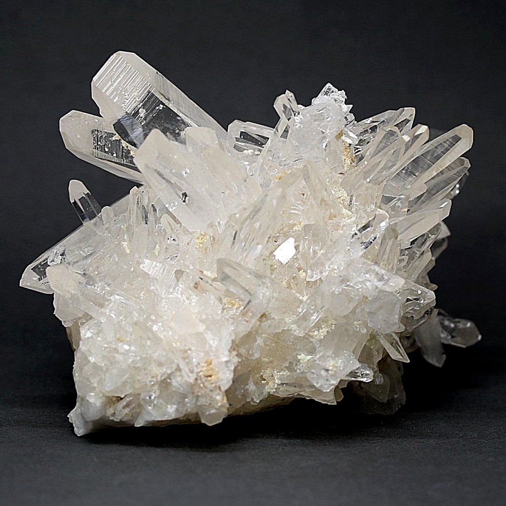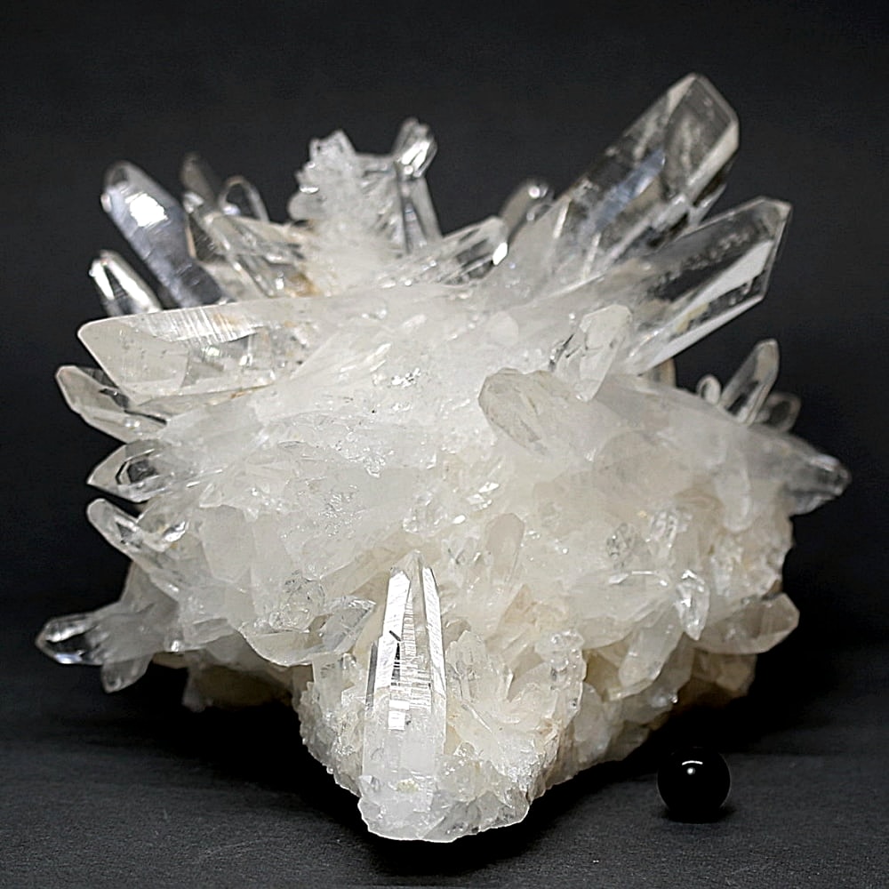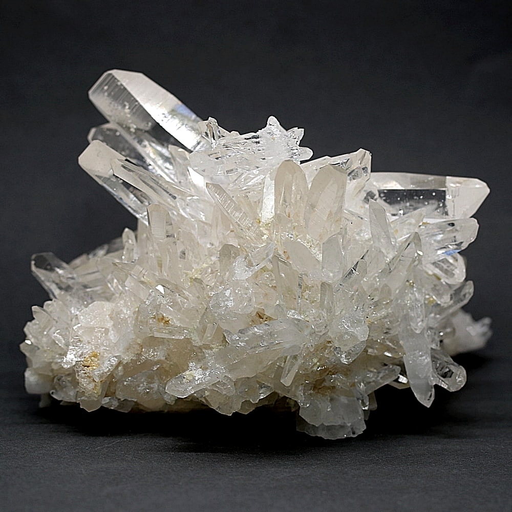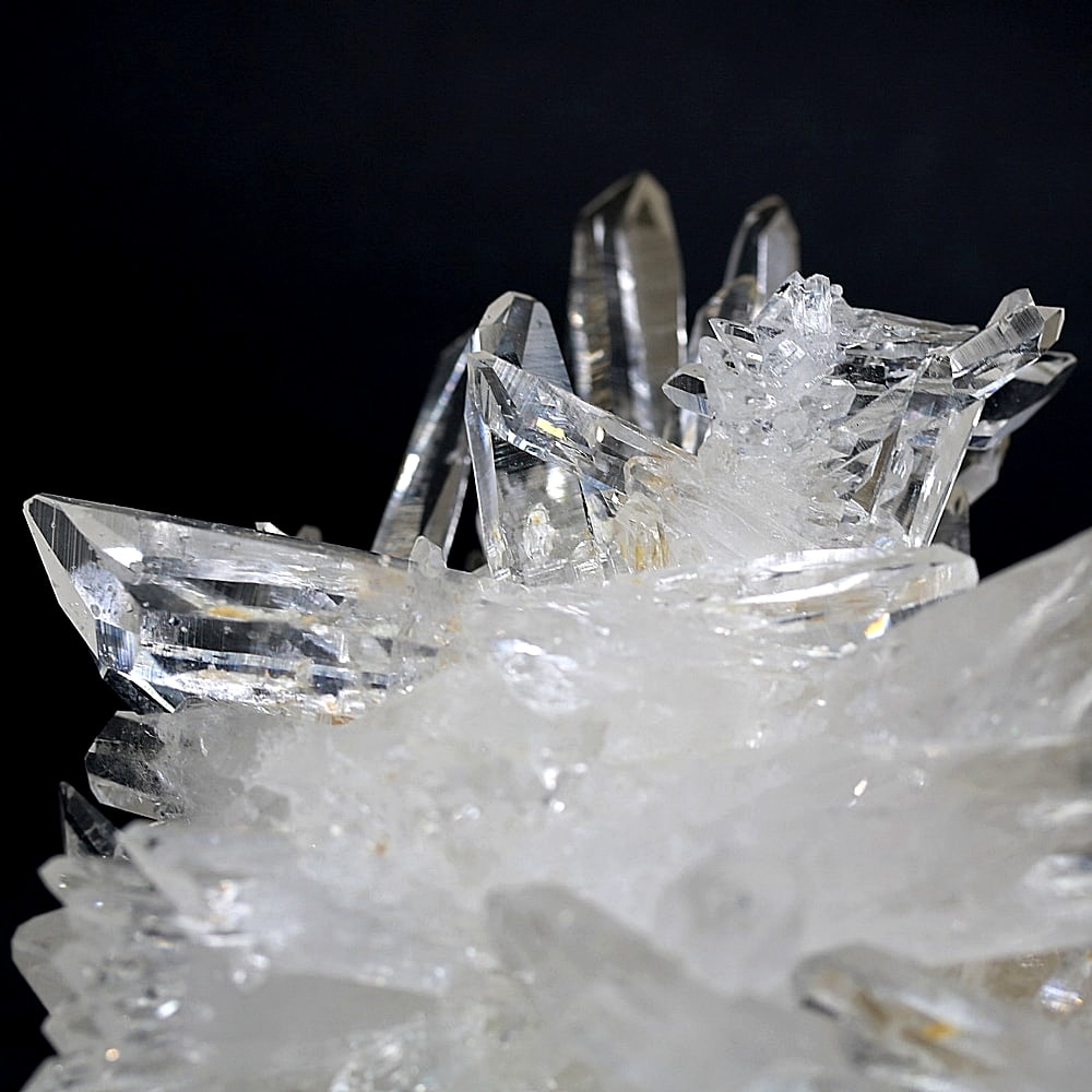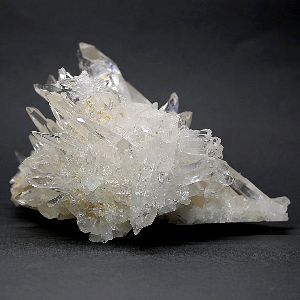 ご覧のお品は、高い透明度を誇る清らかな結晶が育つ見事な大型クラスターです。 放射状に突き出した結晶に差し込む光が複雑に反射し、無数の輝きを放つまばゆい美しさに、ただただ見惚れてしまいます。