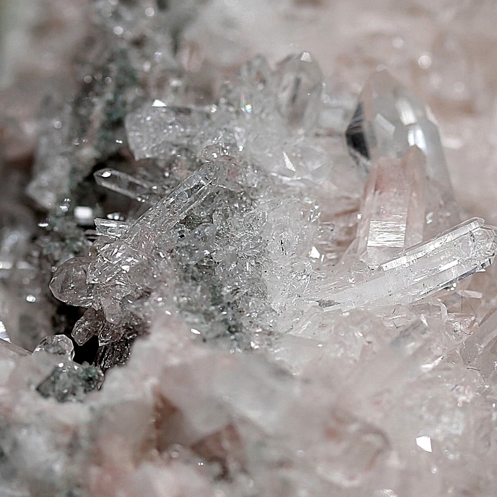 透明結晶に、ほんのりピンクと、緑泥石グリーン