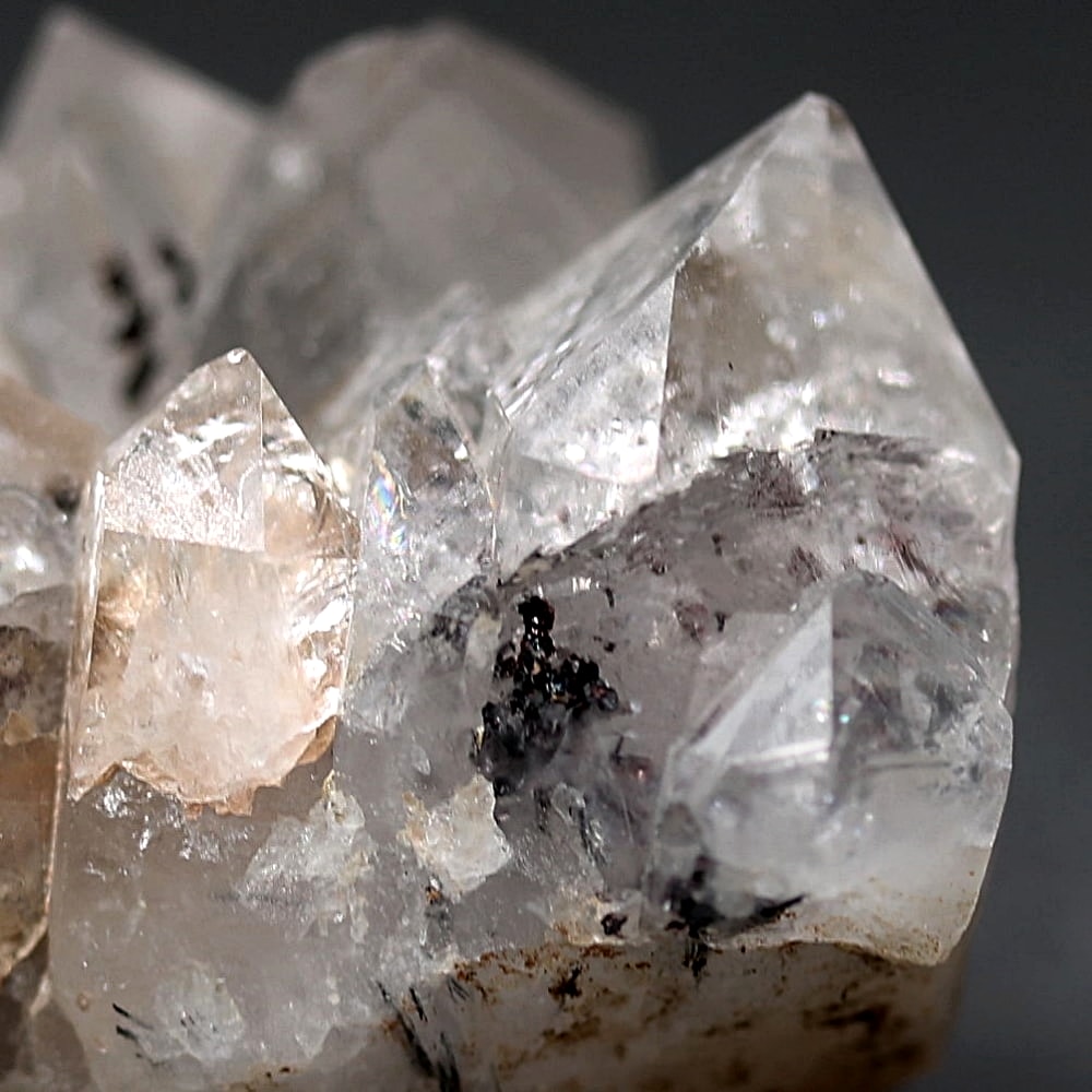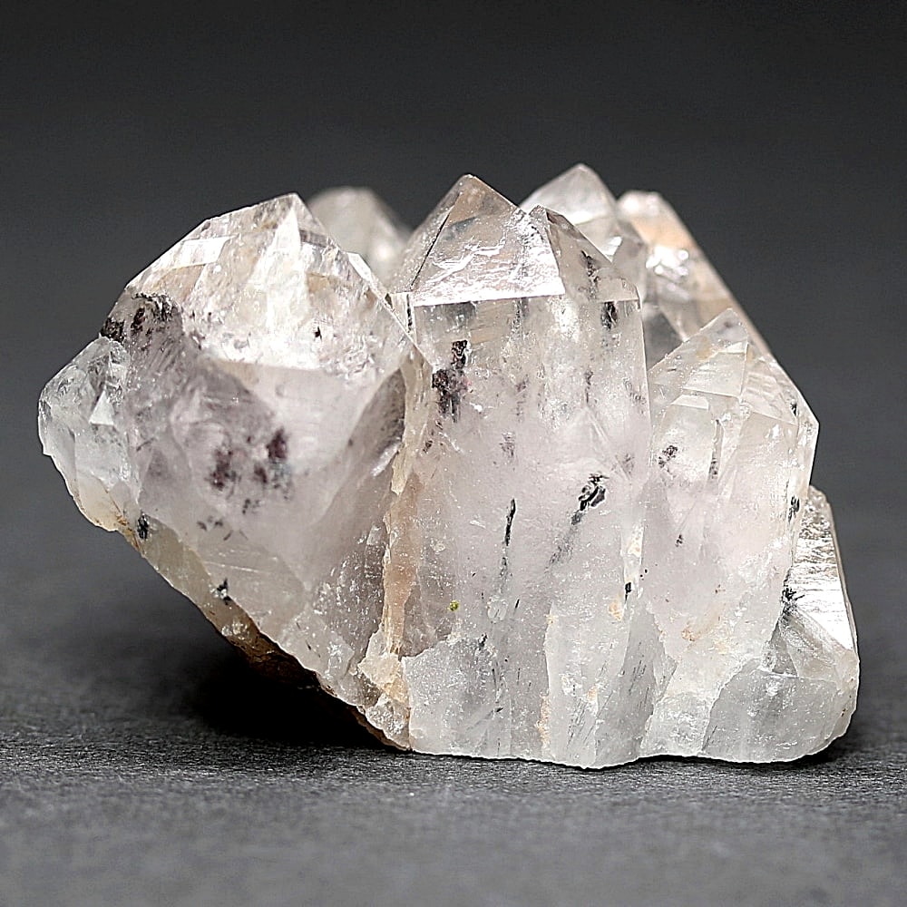 透明度高い水晶に、赤黒い鉱物がインクルージョンされた、他のレムリアンシードクラスターとは異なるディテールをお楽しみいただける逸品です。