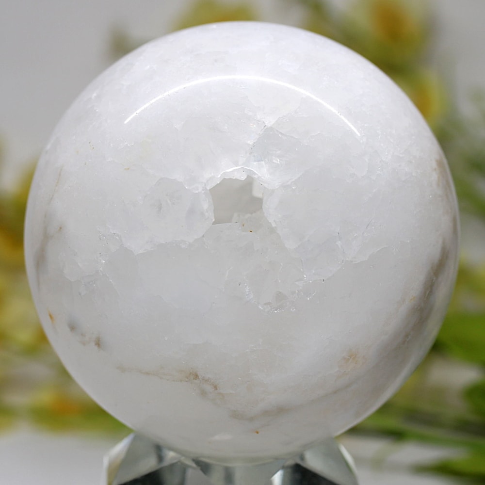 球体の中に、自然が偶然作り出した開口部を持つこの石は、“福を招き入れる縁起物” として非常に人気があります。